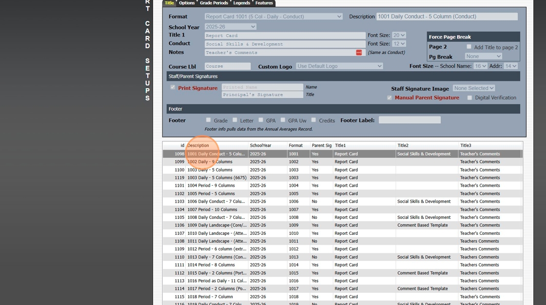 8. Select Grade Period Option for Print Grade Period(s) and Select Grade Period Options for Print Grade Period Notes, Print Grade Period Comments and/or Print Grade Period Conduct.