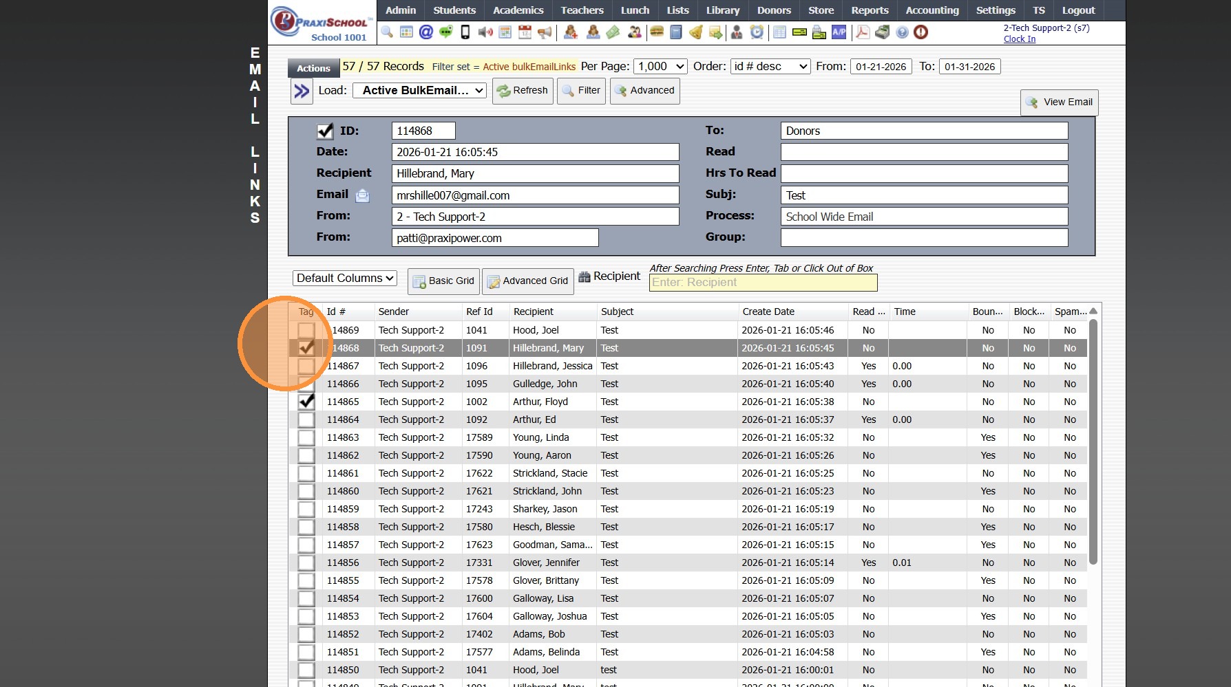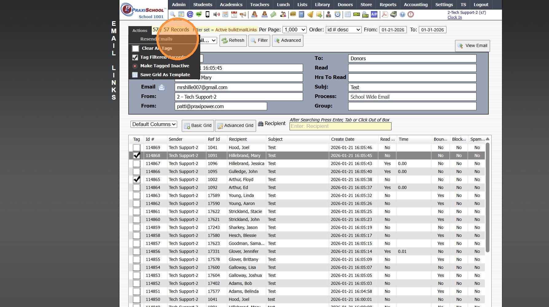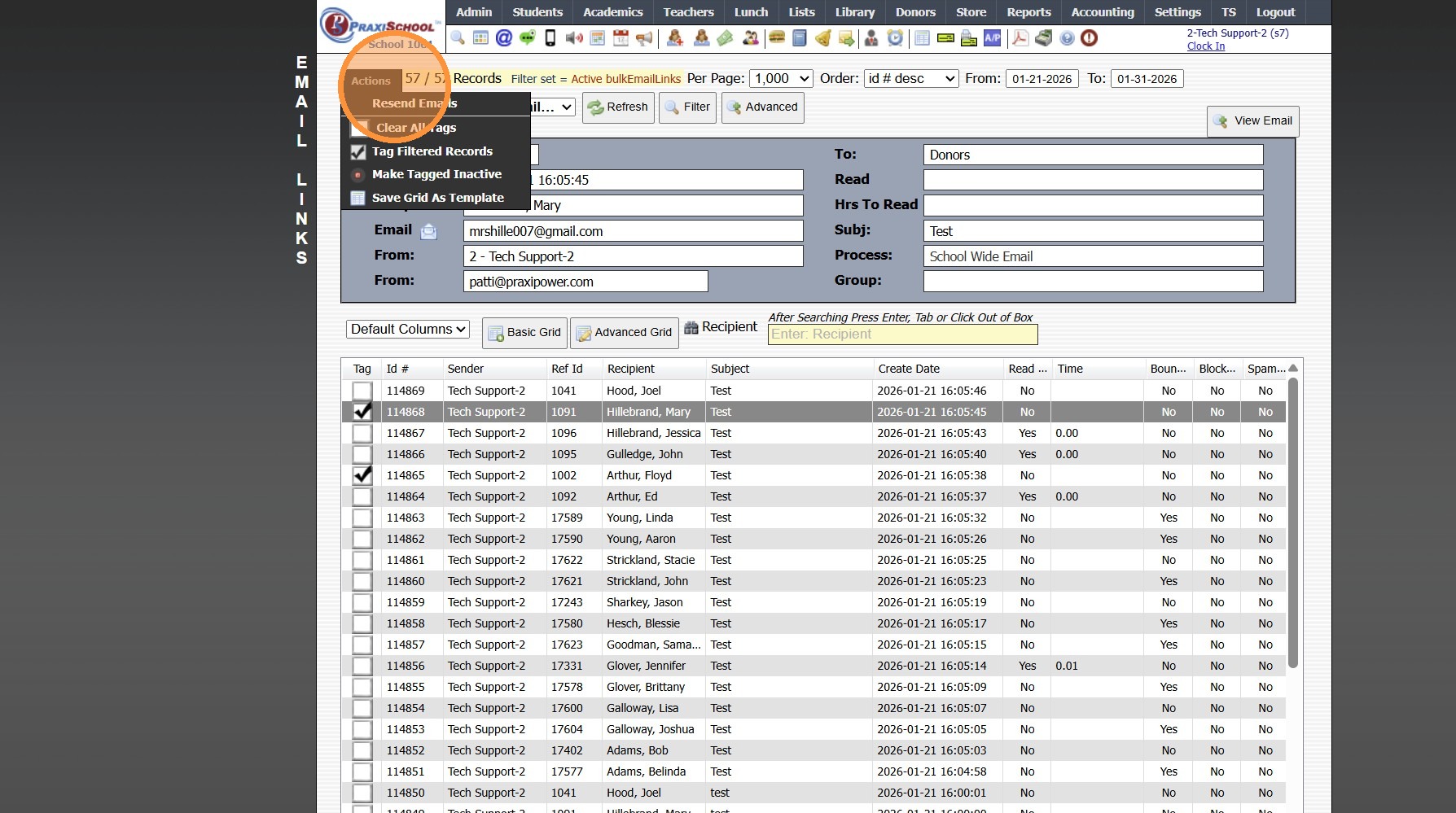 Sending Welcome Emails to Staff, AR (Parents) and Students 1. Log into PraxiSchool and Select the Database To Send the Welcome Email From (i.e. Staff, AR or Students) 2. Click "Actions" 3. Click "Send Email" 4. Click "Templates" 5. Click to Open ...