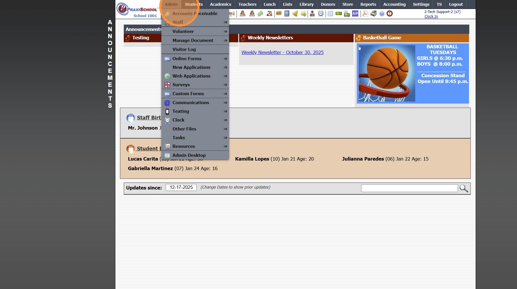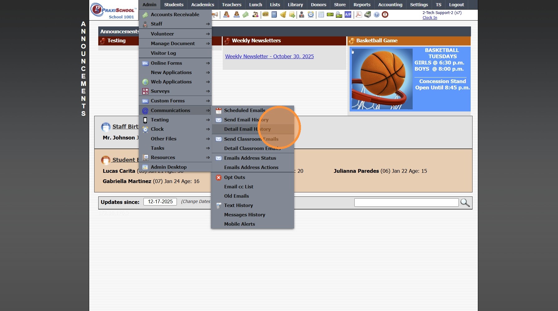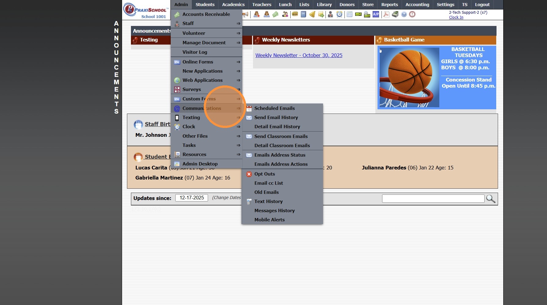 Sending Welcome Emails to Staff, AR (Parents) and Students 1. Log into PraxiSchool and Select the Database To Send the Welcome Email From (i.e. Staff, AR or Students) 2. Click "Actions" 3. Click "Send Email" 4. Click "Templates" 5. Click to Open ...