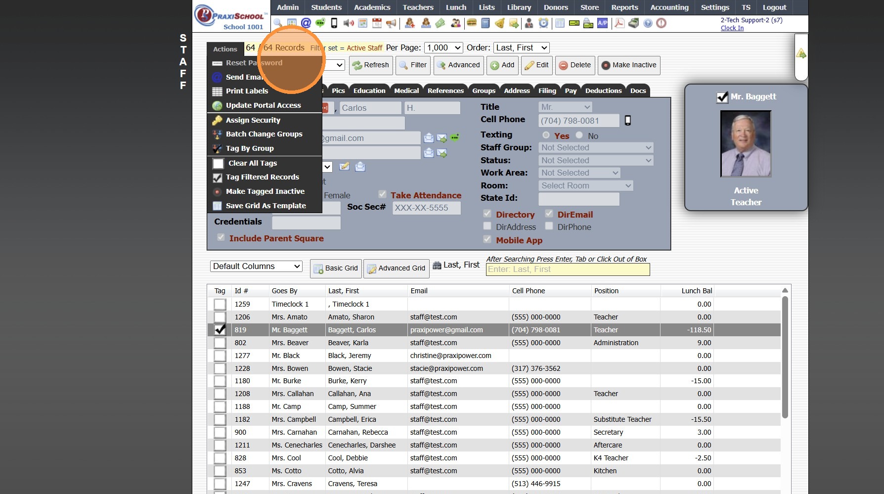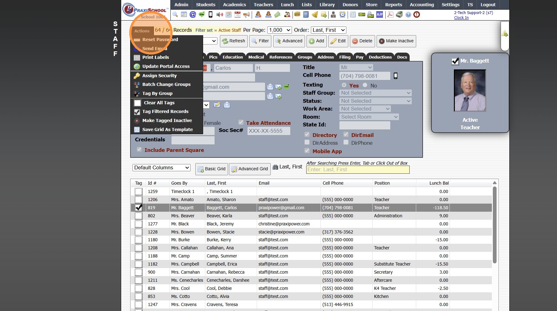 Sending a Password Reset Link - Student 1. Click "Students" 2. Click "Students" 3. Select Student 4. Click "Actions" 5. Click "Reset Password" 6. Click "Send Reset Link" 7000.6.2