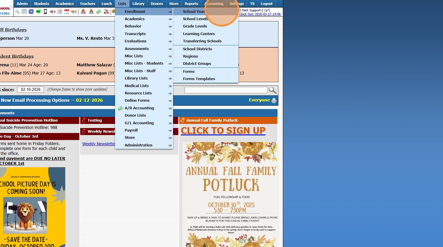 Session Close Tasks - Admin: Copy School Calendar