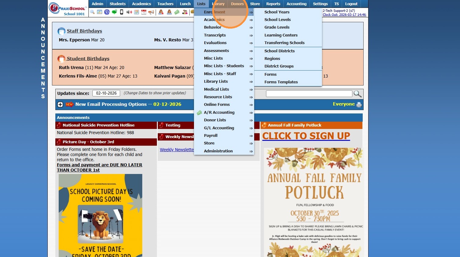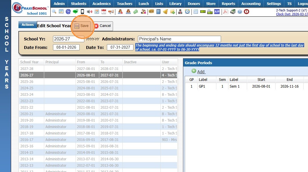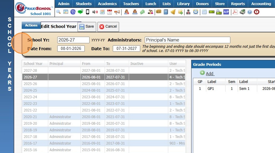 Greetings from PraxiPower, Click to Watch Short Instructional Video As always, Ending your current school year is a key process youMUST do before moving to the next year. It is VERY IMPORTANT to close your current school year in Praxi and to “roll ...