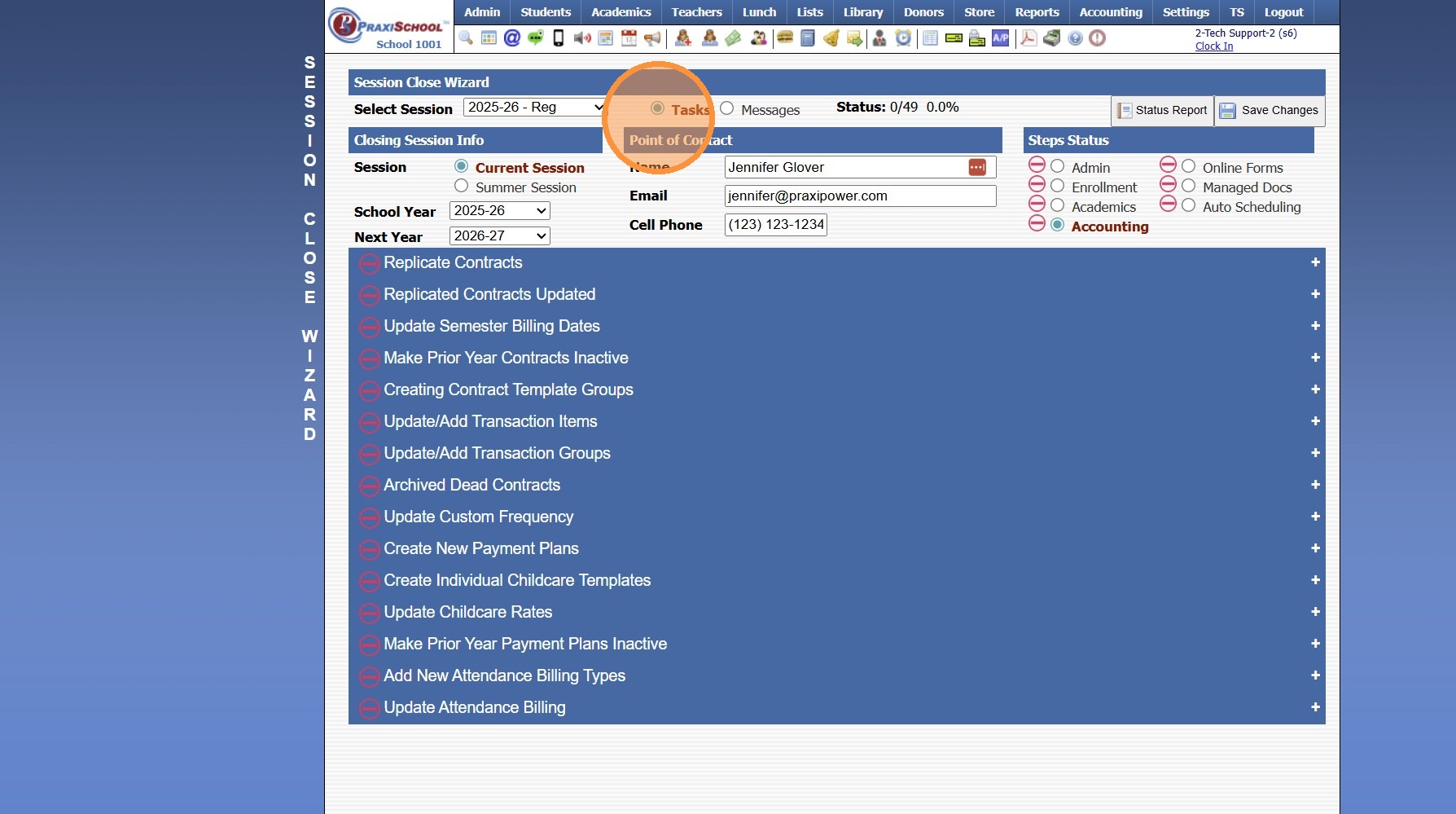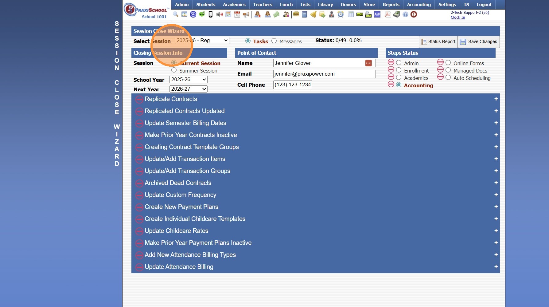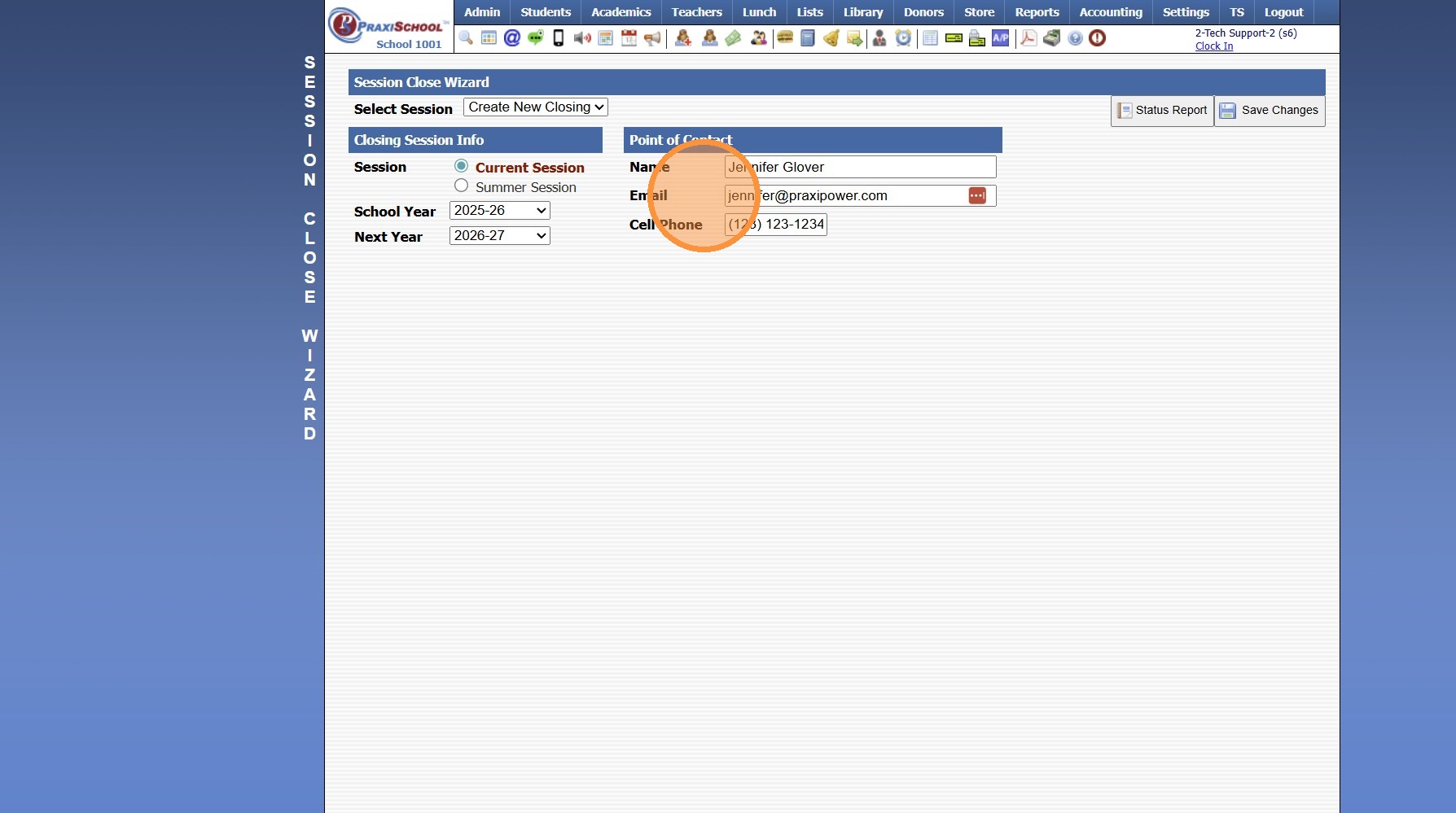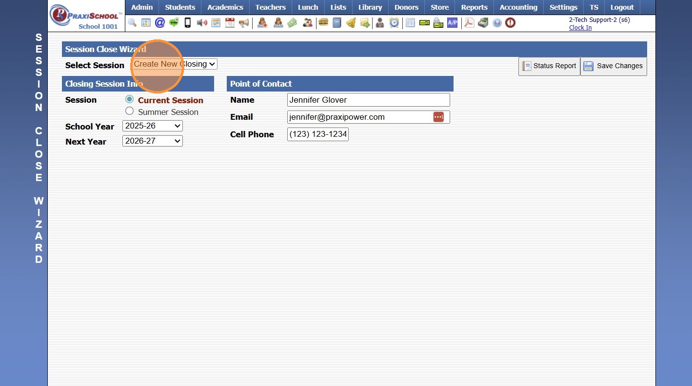 5. Select "Current Session" to Close Current School Year, Select "Summer Session" to Close a Summer Session