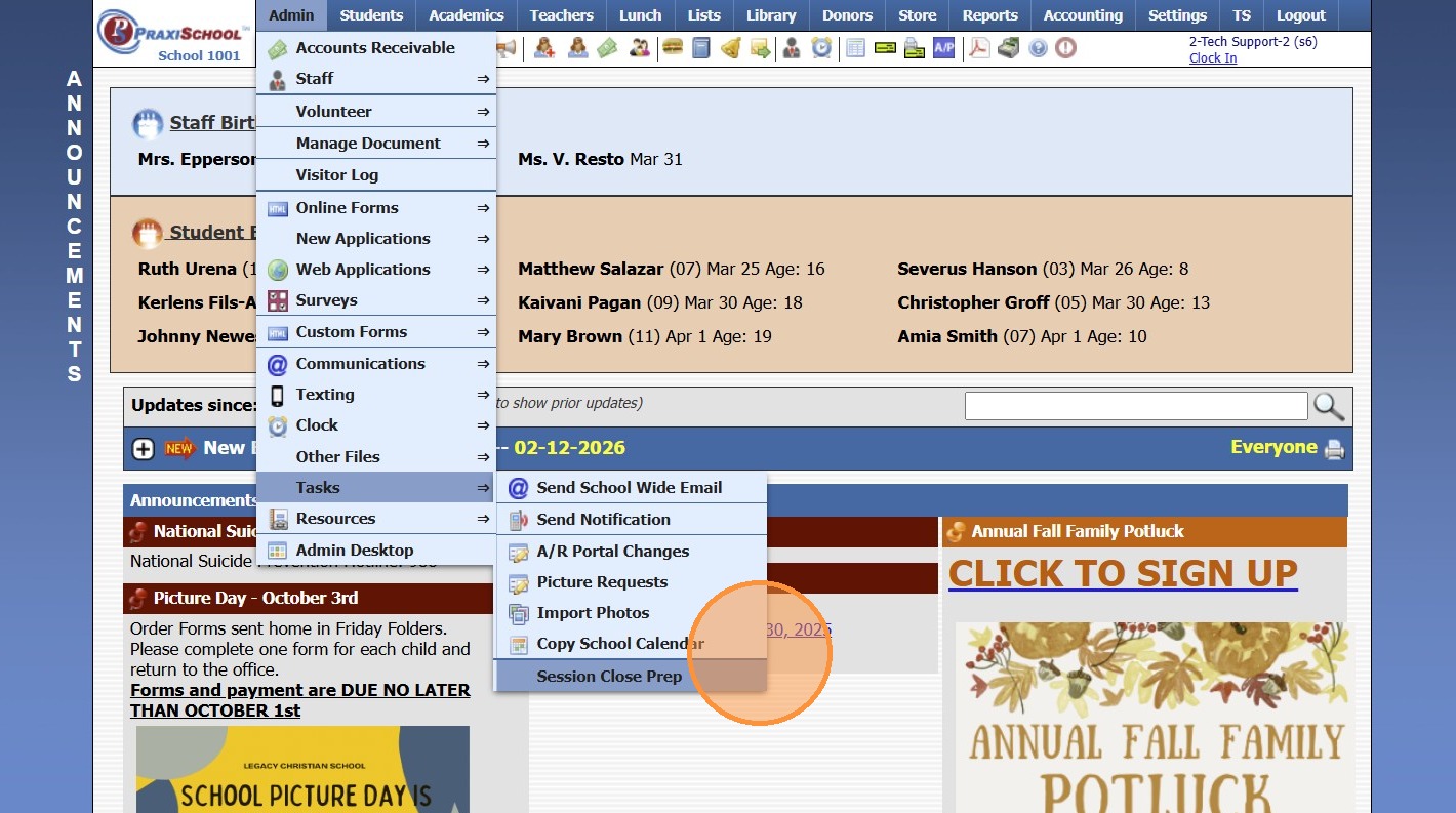 Greetings from PraxiPower, Click to Watch Short Instructional Video As always, Ending your current school year is a key process youMUST do before moving to the next year. It is VERY IMPORTANT to close your current school year in Praxi and to “roll ...
