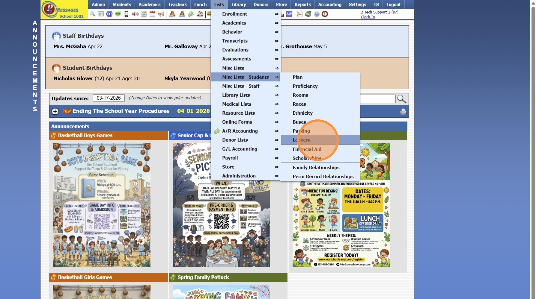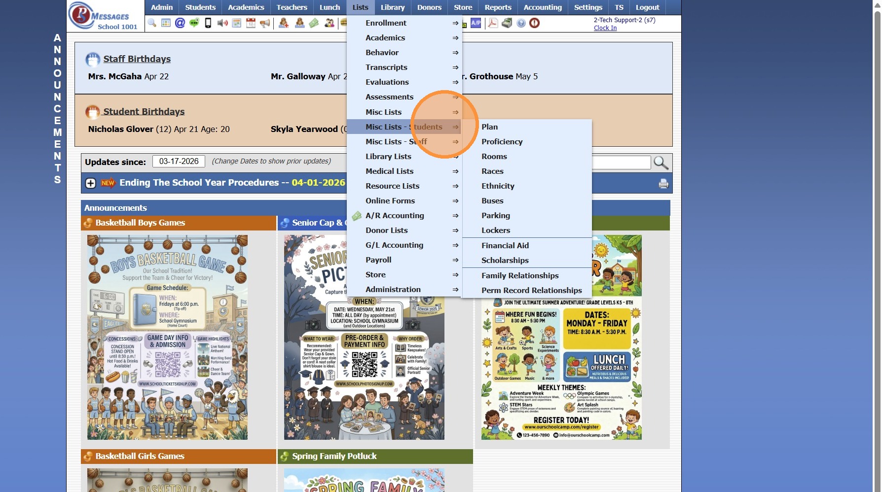1. Click "Admin" 2. Click "Tasks" 3. Click "Session Close Prep" 4. Select "Create New Closing" from dropdown 5. Select "Current Session" to Close Current School Year, Select "Summer Session" to Close a Summer Session 6. Select Current School Year 7. ...