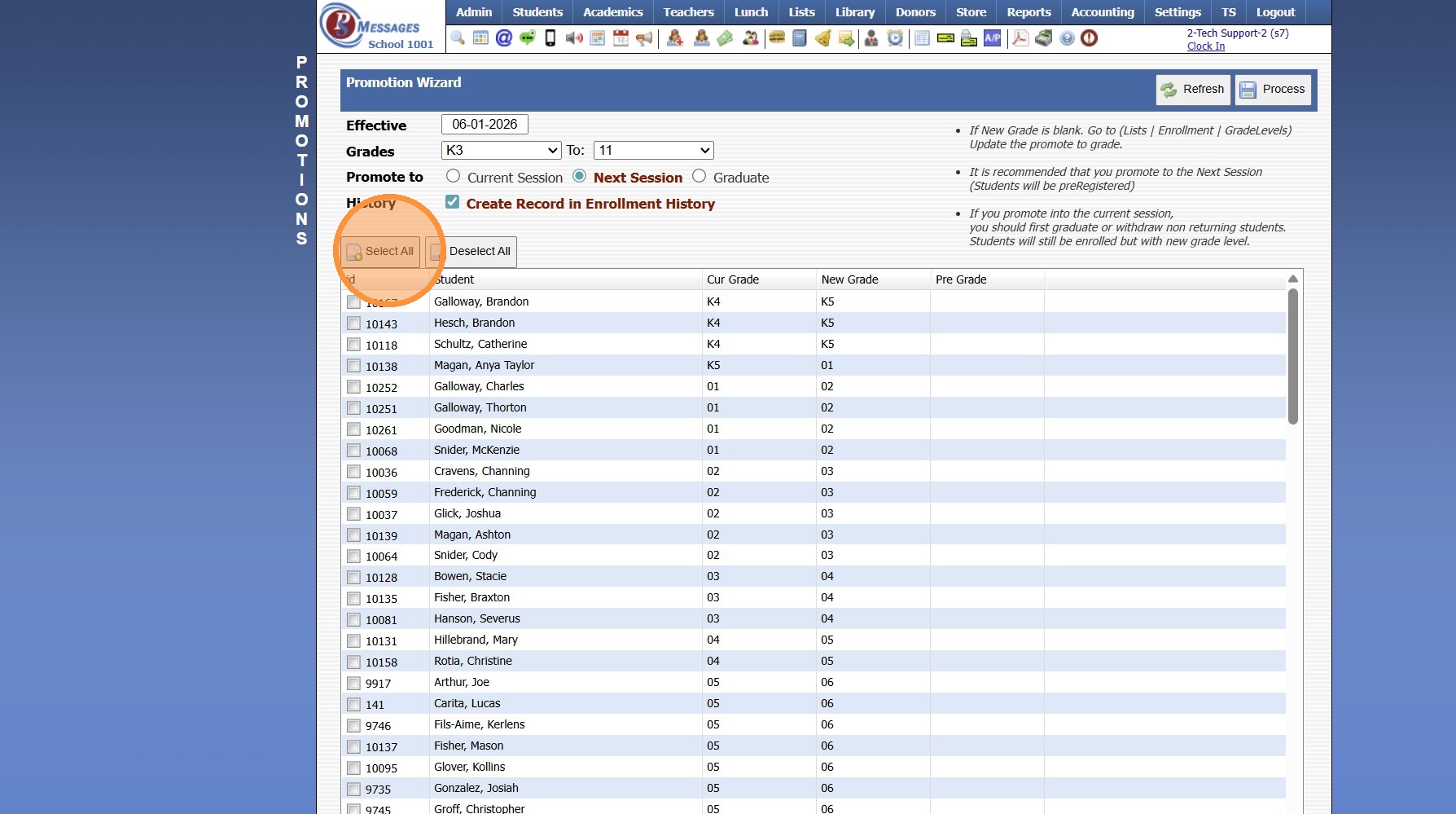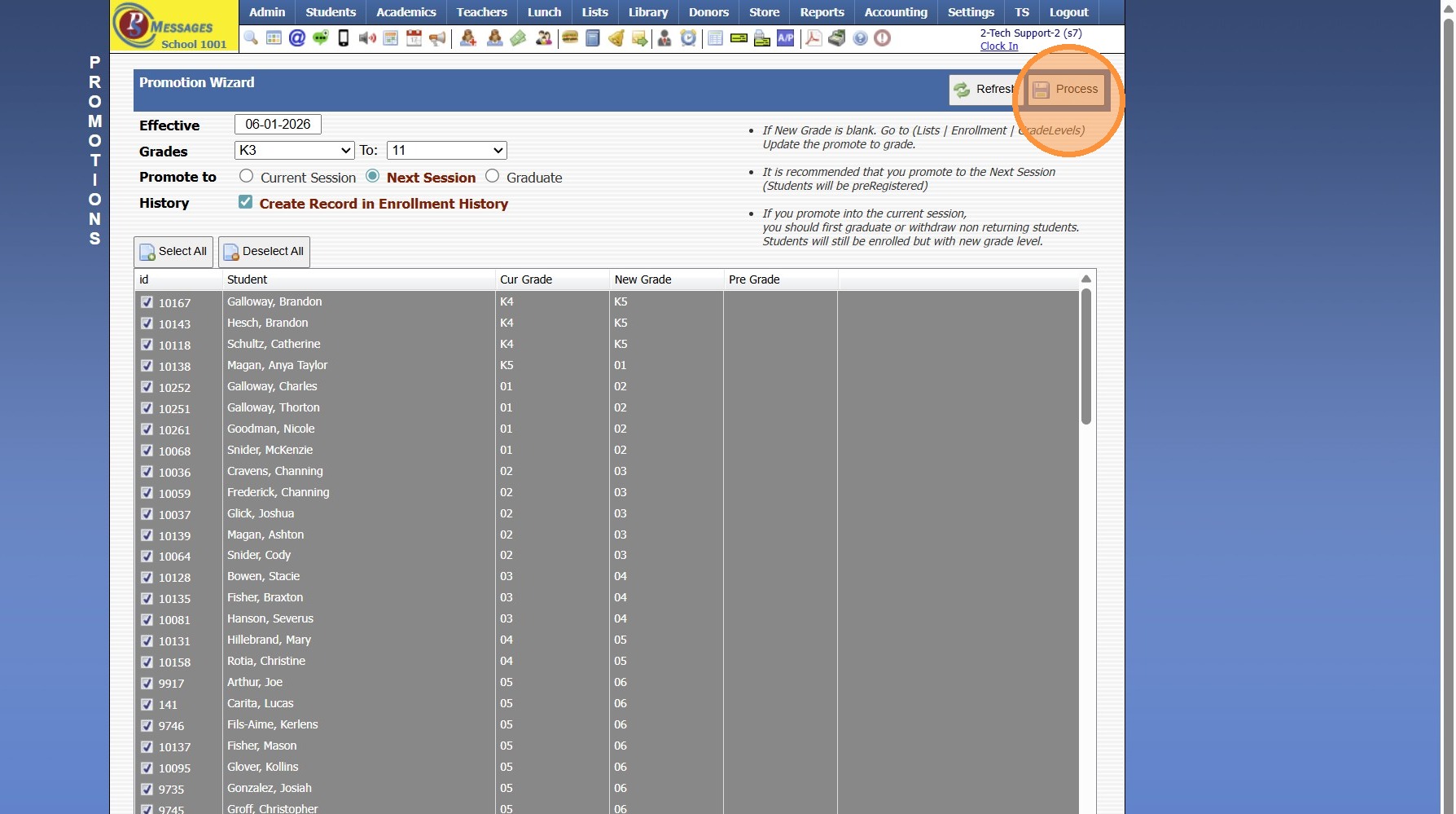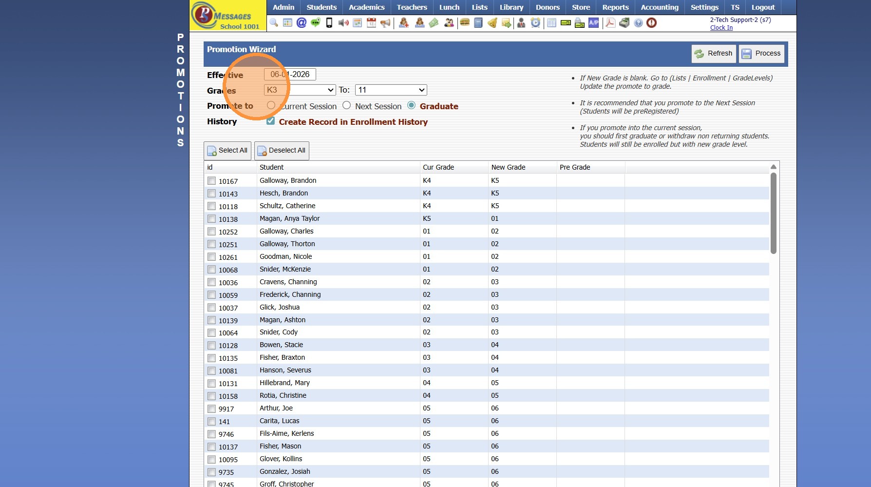 Pre-Register Students to Next Grade Level Using the Promotion Wizard