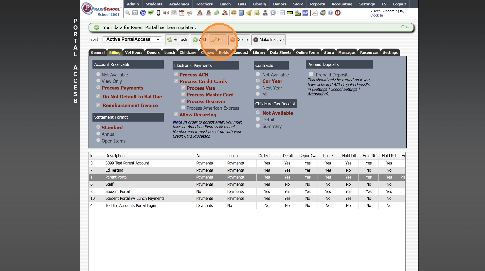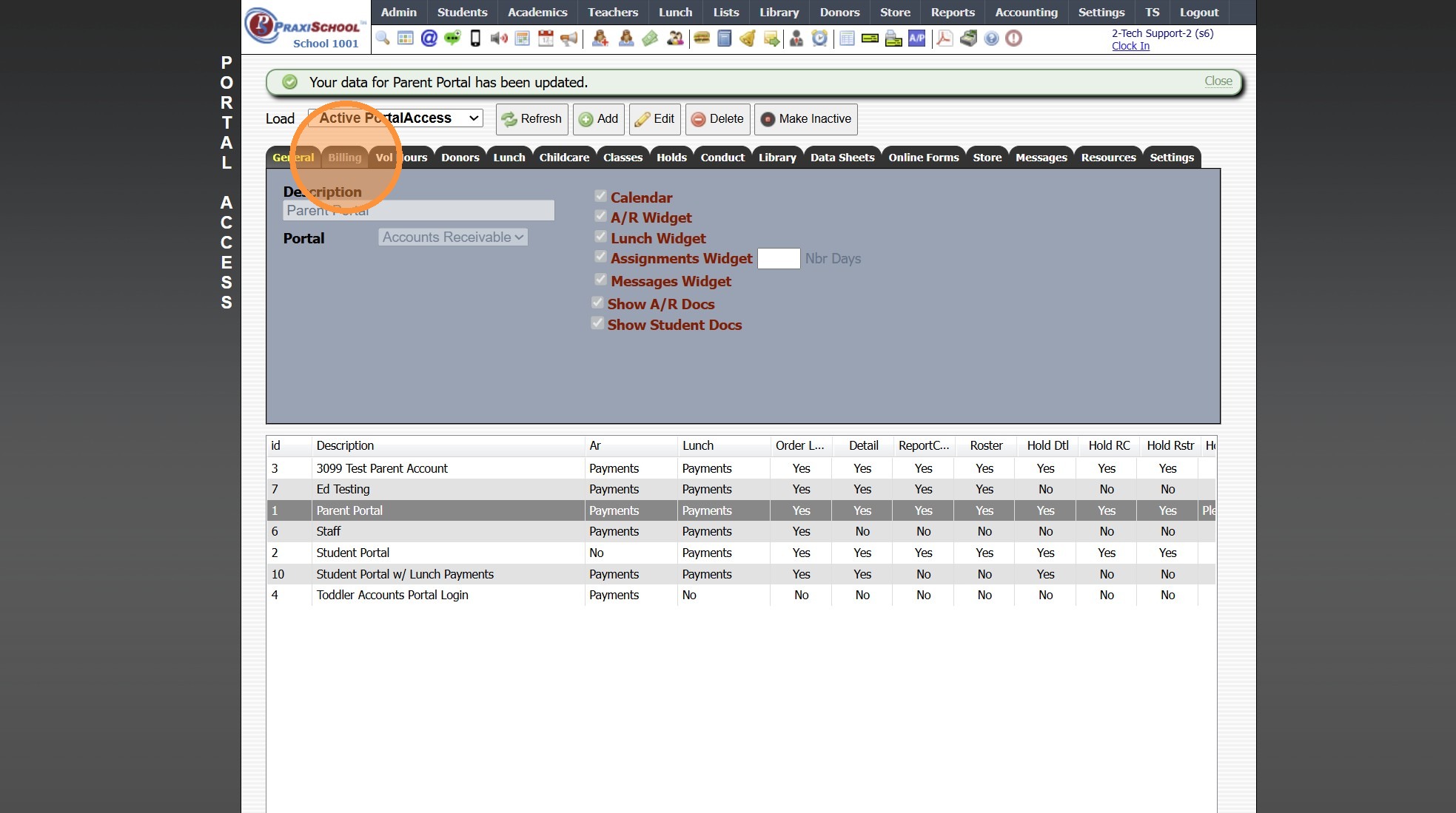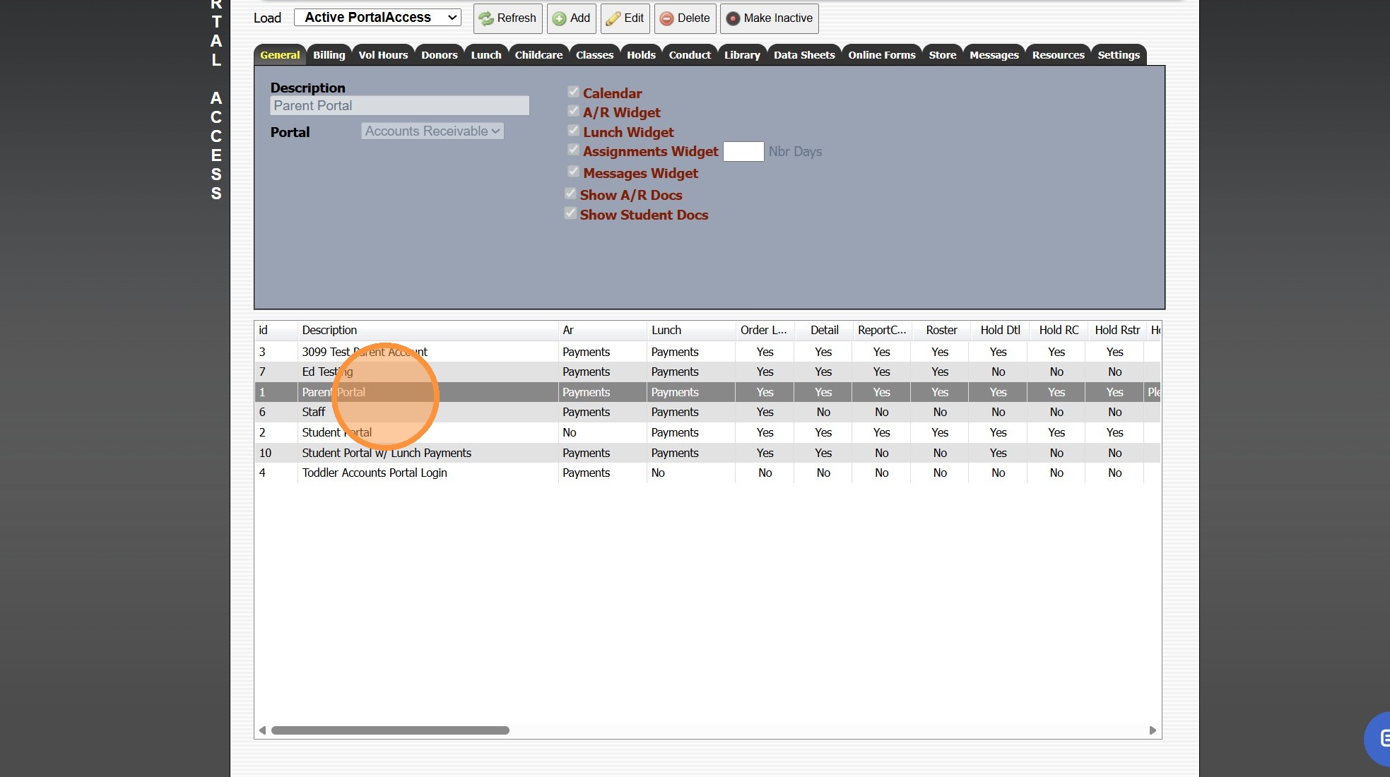 4. Select Parent Portal Access to Update