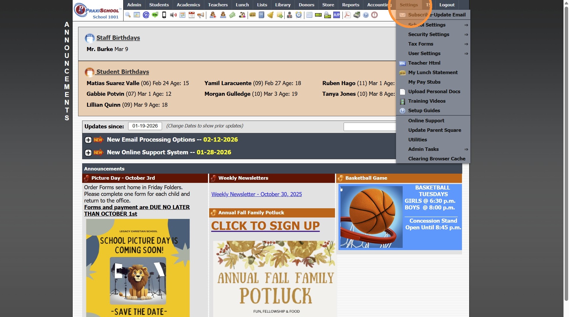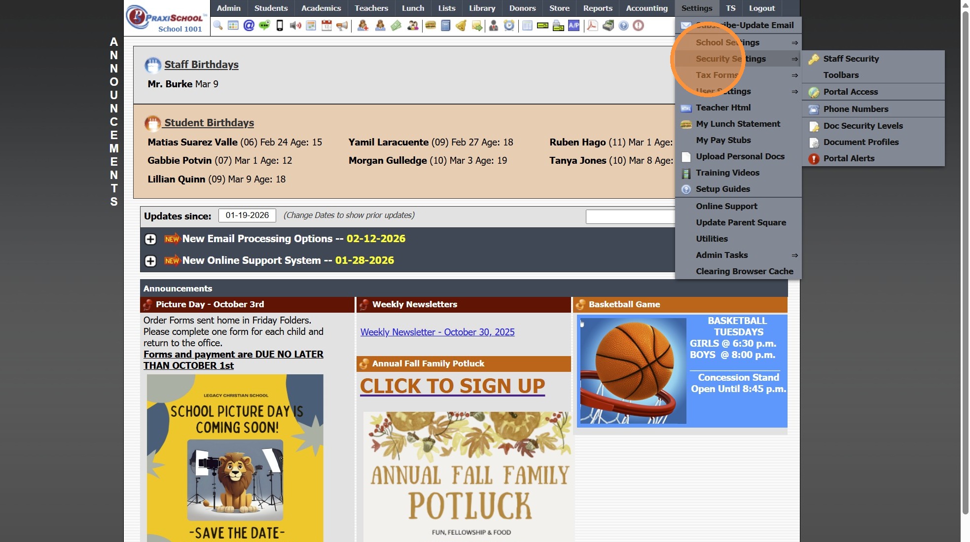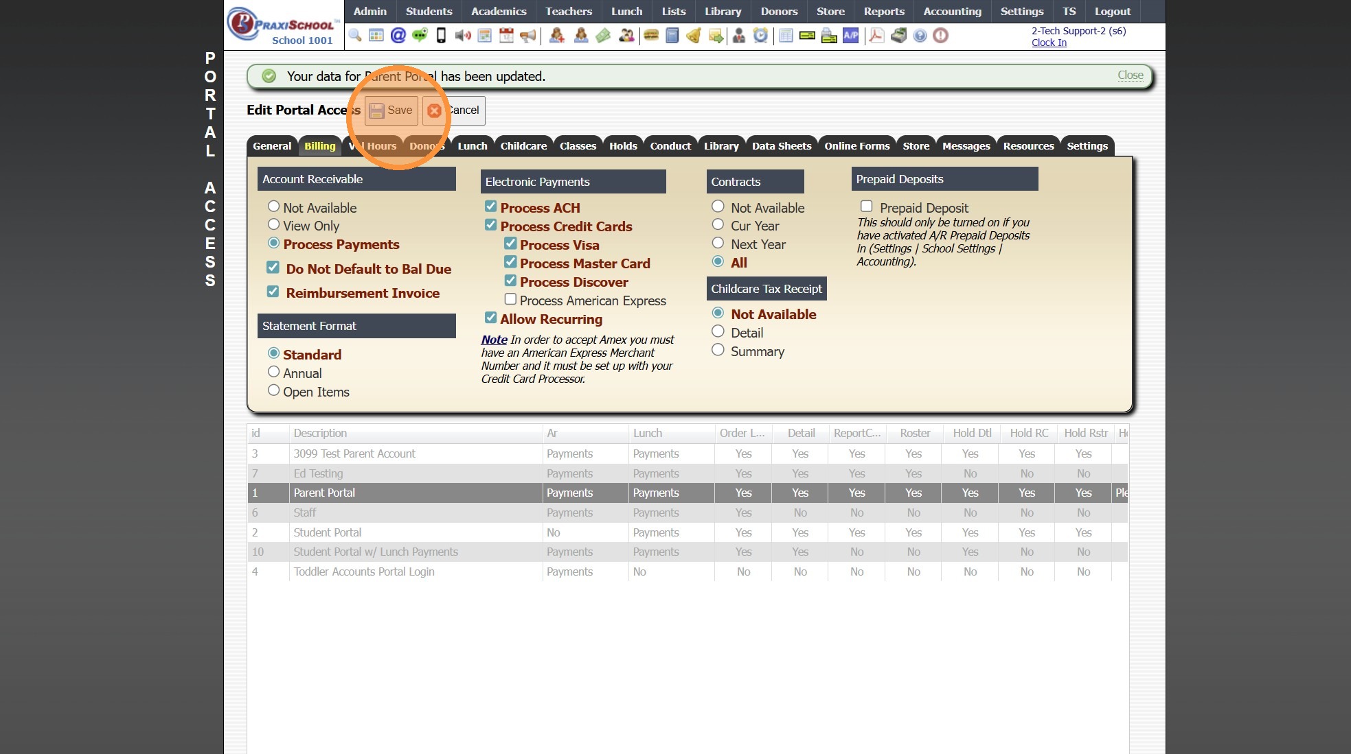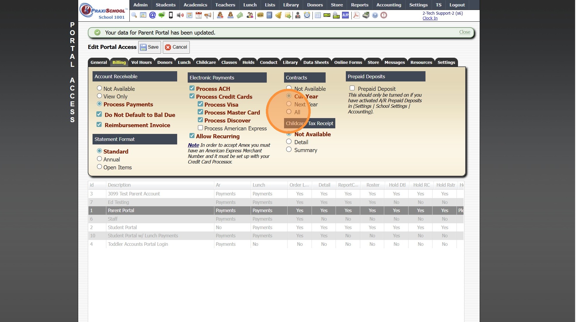 4. Select Parent Portal Access to Update