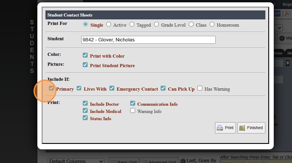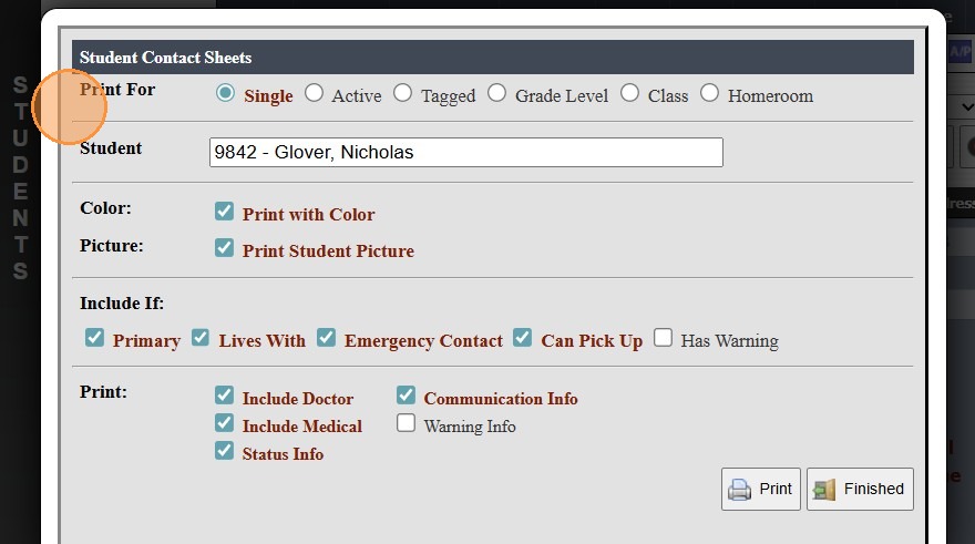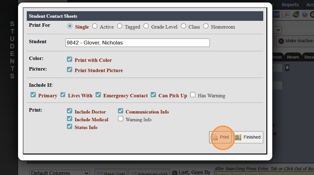Printing Student Contact Sheets in Batch