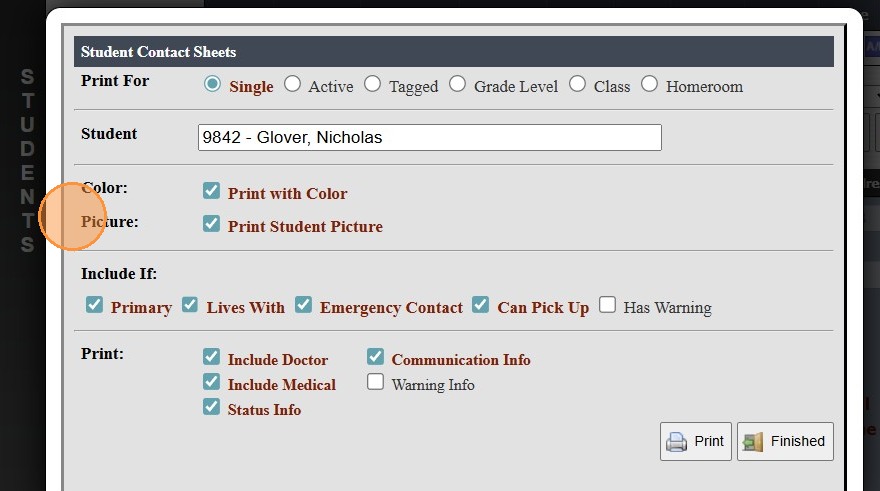 12. Student Contact Sheet will also include Medical information is selected