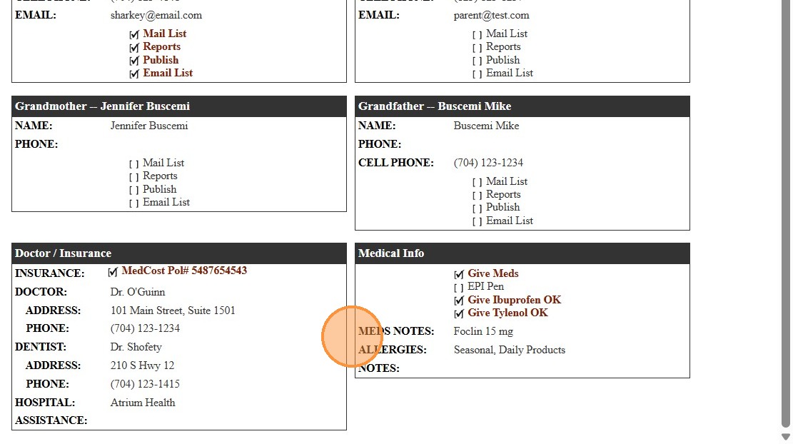 UPDATE: Student Insurance Company & Policy Number Added to Student Contact Report 1. Click "Students" 2. Click "Students" 3. Select Student 4. Click the "Medical" tab 5. Verify that Has Insurance is Check & Insurance Policy Information is entered 6. ...