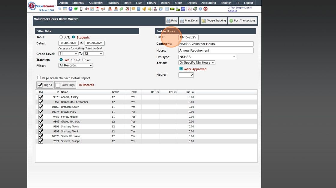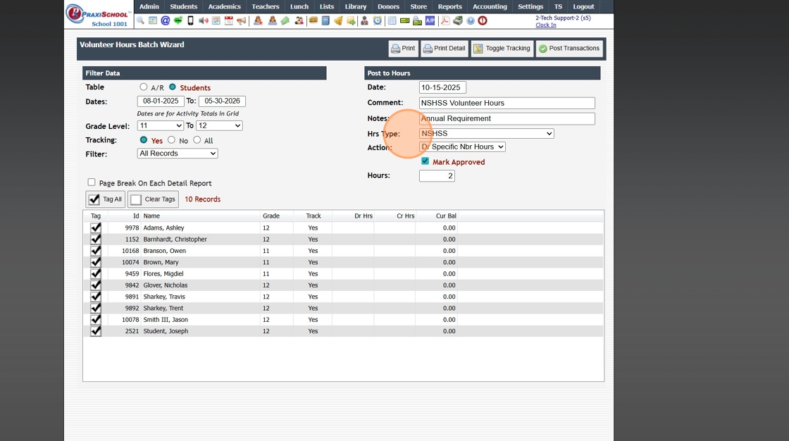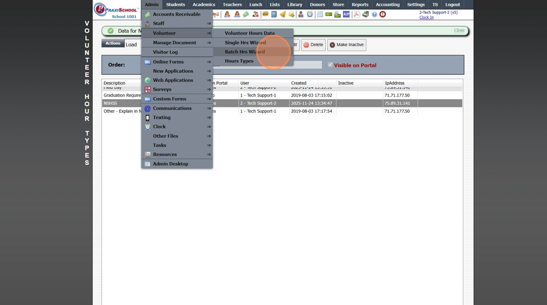 STUDENT EXAMPLE: Creating Volunteer Hour Type for Students & Batch Adding Hours to Student Accounts