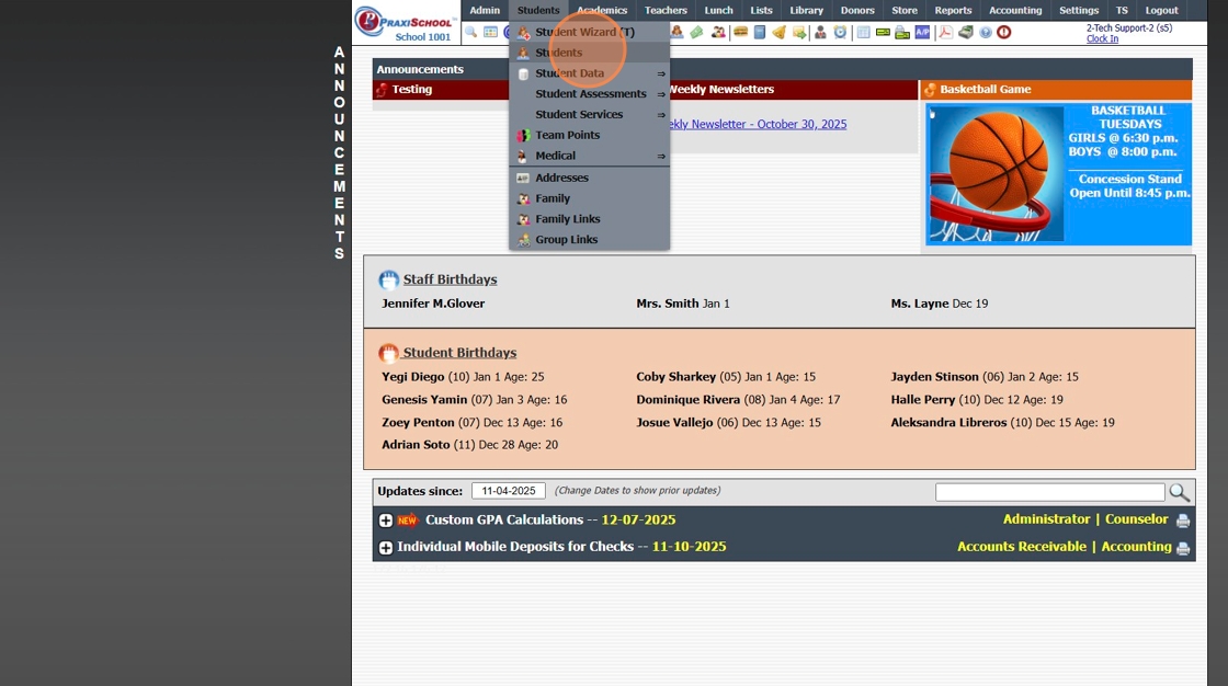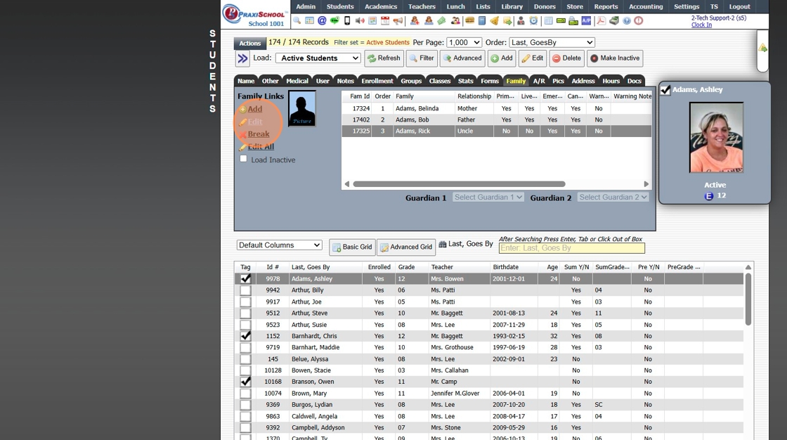 Batch Editing Student's Year of Graduation 1. Click "Students" 2. Click "Students" 3. Click "Actions" 4. Click "Batch Tag" 5. Select Grade Level 6. Click "Tag Students" 7. Click "Close & Set Filter" 8. Click "Actions" 9. Click "Batch Edit Tags" 10. ...