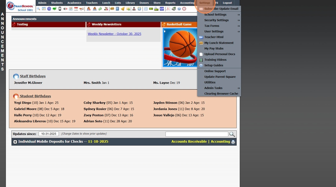 Time Clock Transactions 1. Log into PraxiSchool 2. Click "Admin" 3. Click "Clock" 4. Click "Clock Transactions" 5. Set Date From and Date To & Click "Refresh" 6. Click on a Timeclock Transaction to View Clock Details 7. Select Grid Report 8. Click ...