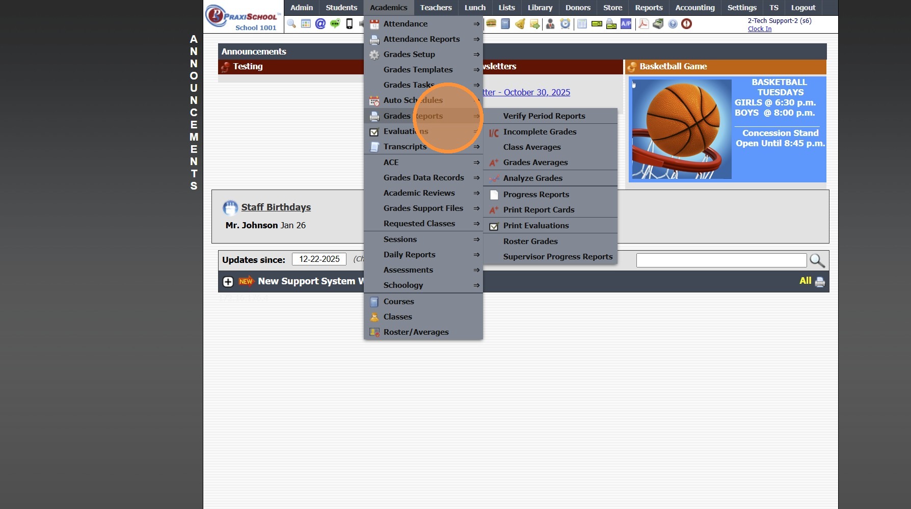 Opening New Grade Period For Report Cards