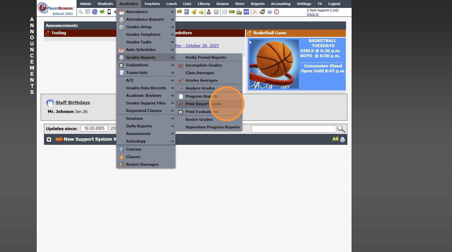 3. Click "Print Report Cards"