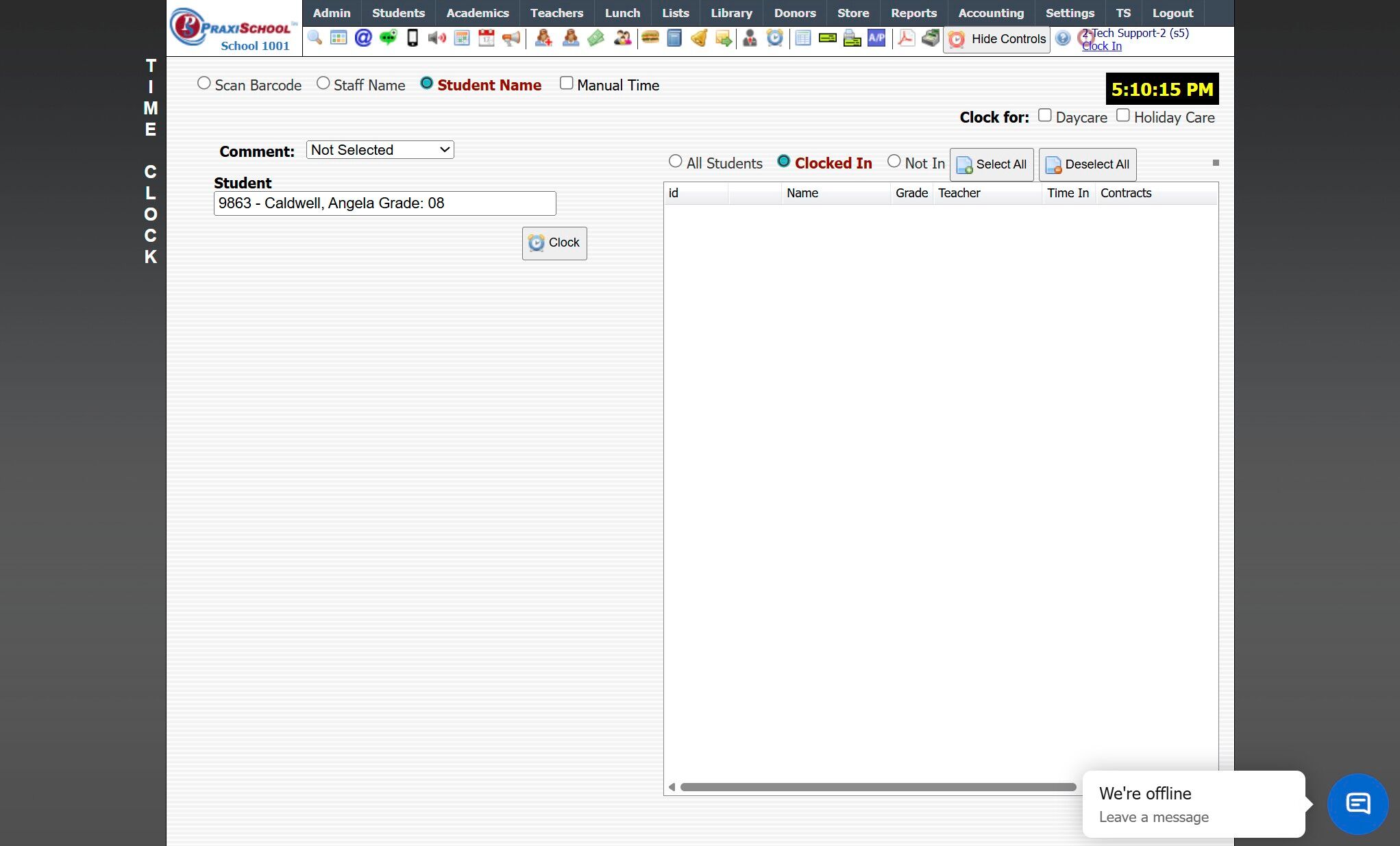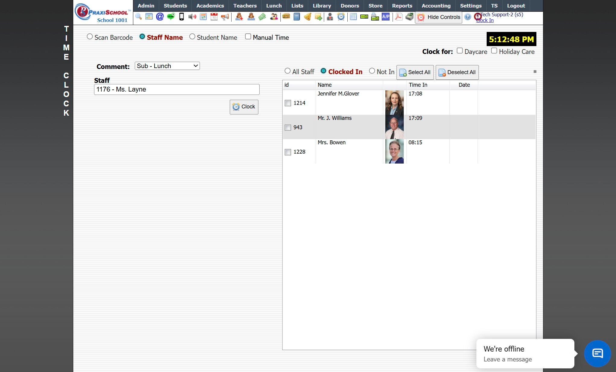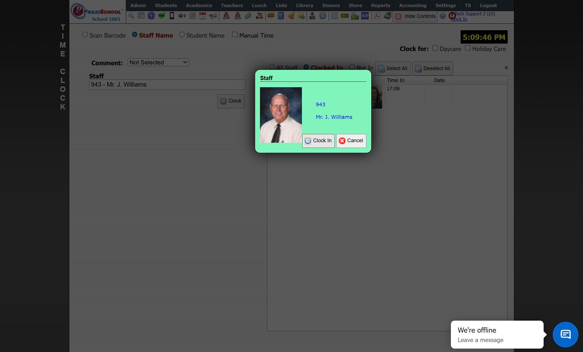 3. Click inside the Clock Id box & Scan Staff / Student Barcode