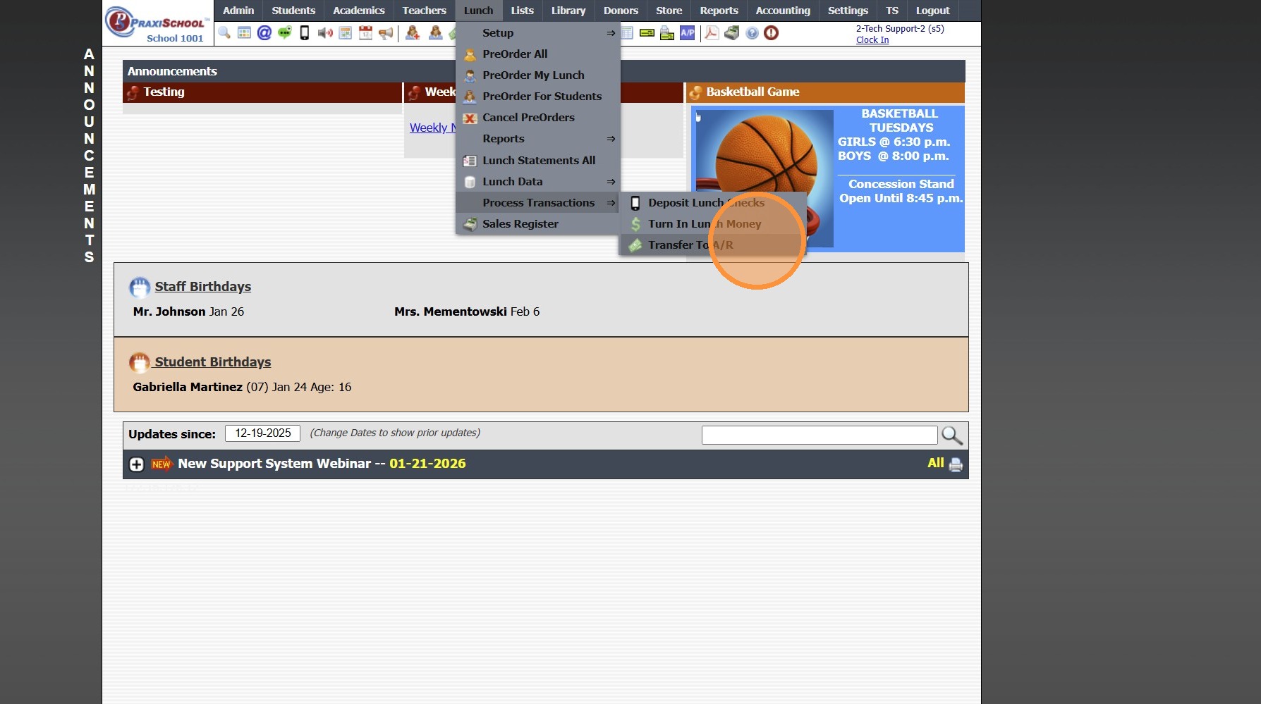 Transferring Lunch Balances to the Student AR Account