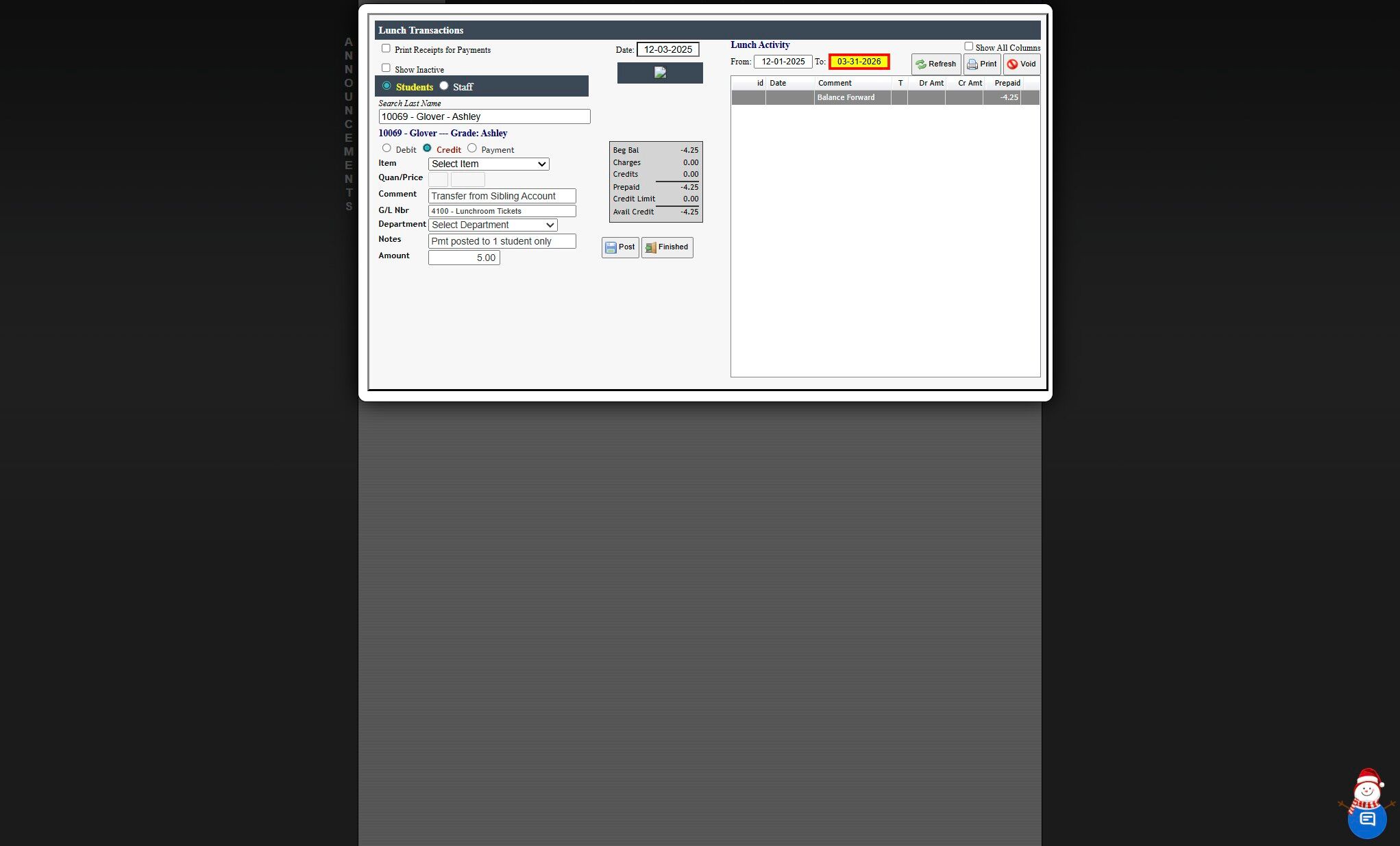 Transferring Lunch Funds from One Student Lunch Account to Another Student Lunch Account