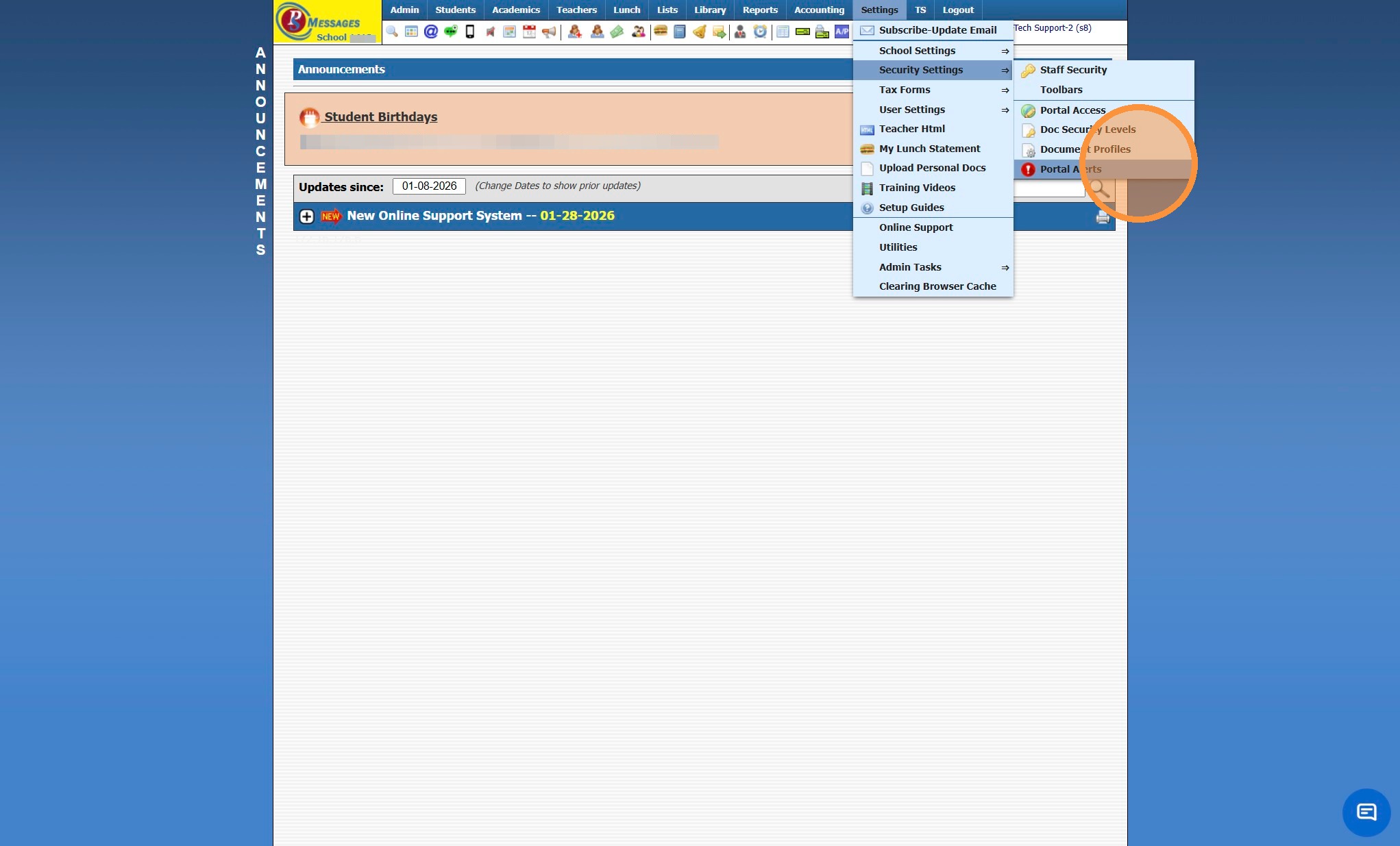 Accessing School Specific Portal Pages 1. Click "Settings" 2. Click "School Settings" 3. Click "Portal" 4. School Specific Student Portal Link 5. School Specific Parent Portal Link 6. School Specific Applicant Portal Link 6500.2.88