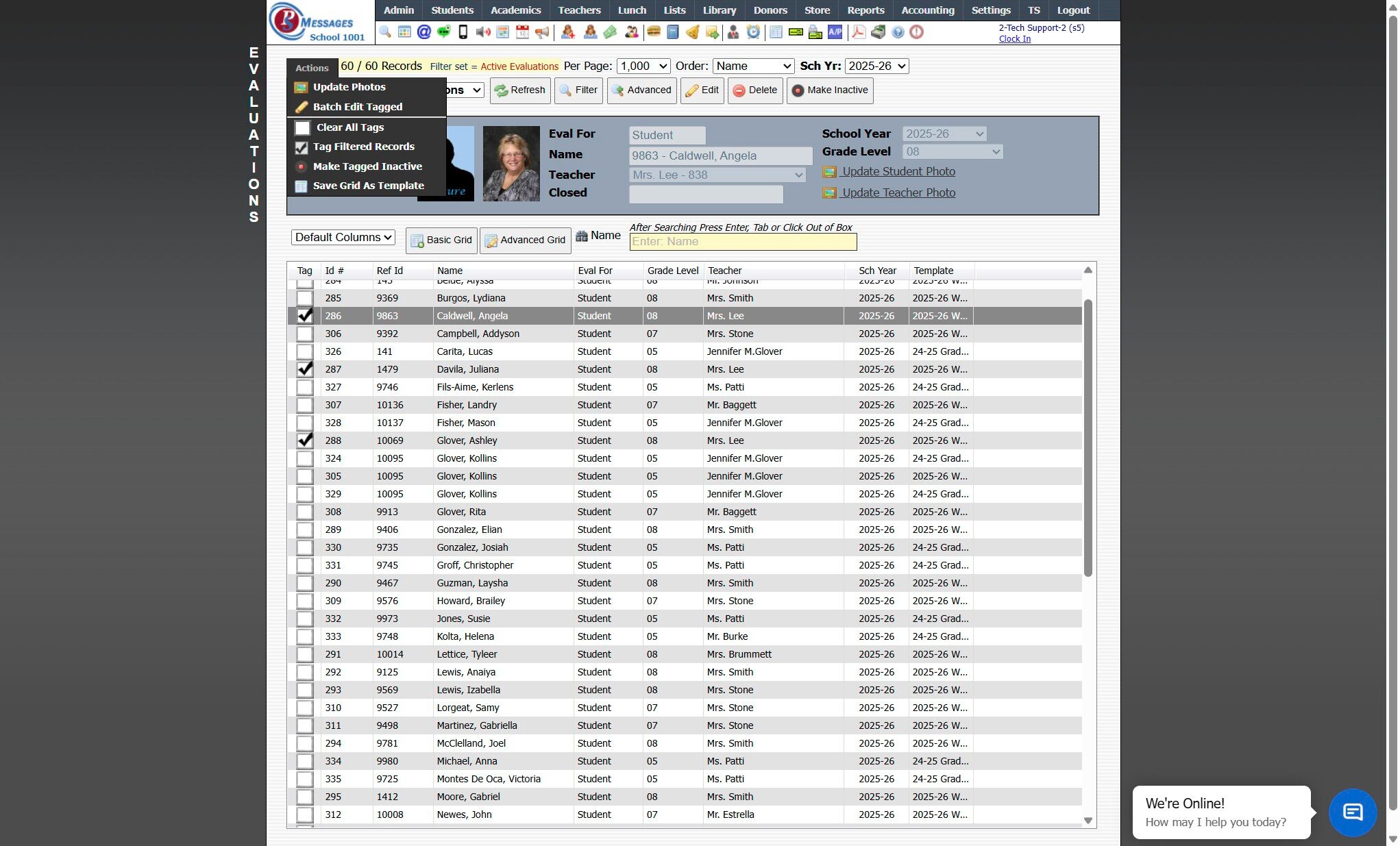 Updating the Homeroom Teacher in the Student File 1. Click "Students" 2. Click "Students" 3. Click "Actions" 4. Click "Batch Tag" 5. Select Current Homeroom Teacher 6. Click "Tag Students" 7. Click "Close & Set Filter" 8. Click "Actions" 9. Click ...