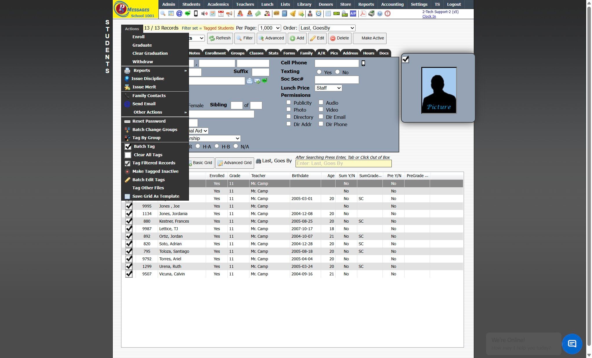 Updating Student/Teacher Photos on Student Evaluation 1. Click "Academics" 2. Click "Evaluations" 3. Click "Student Evaluations" 4. Click "Actions" 5. Click "Tag Filtered Records" 6. Click "Actions" 7. Click "Update Photos" 8. Select "Students" to ...
