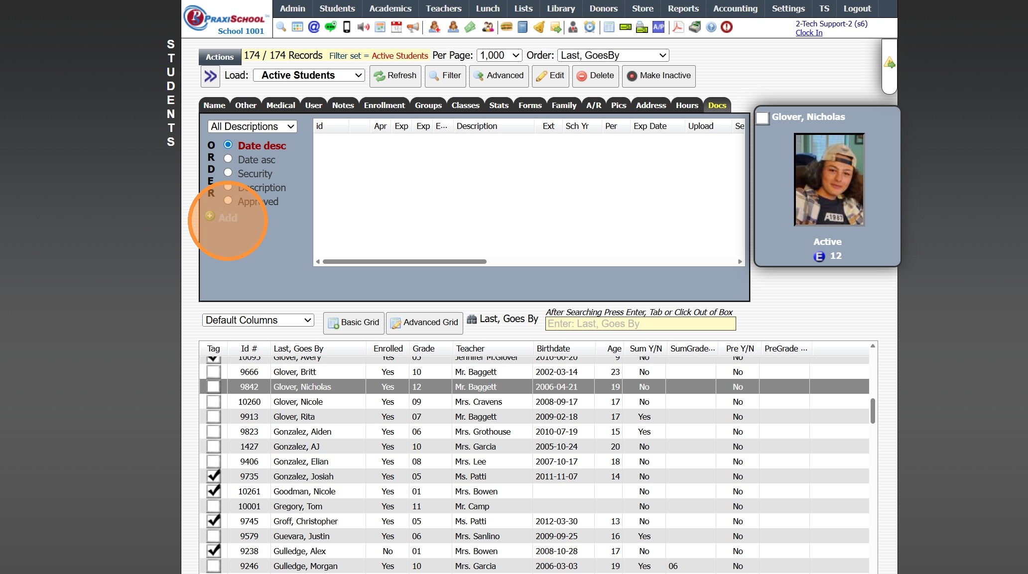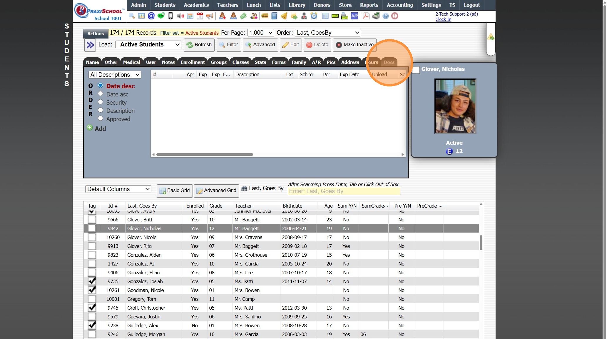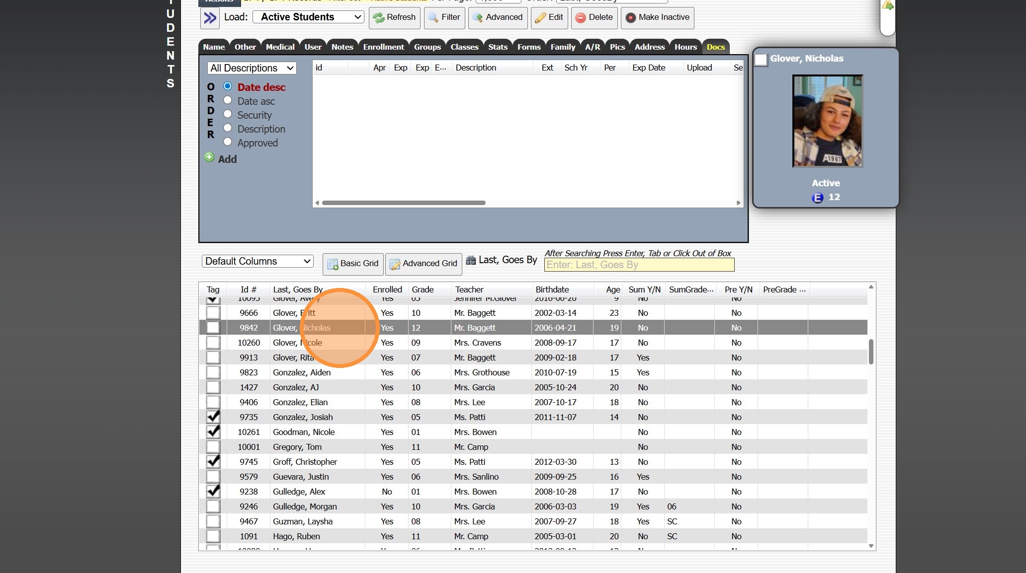 1. Click "Students" 2. Click "Students" 3. Select Student 4. Click the "Docs" Tab 5. Click Envelope Icon Next to Document to Email OR From the Email Screen All Documents or a Folder of Documents can be Emailed 6. Select Process Option 7. Edit/Enter ...