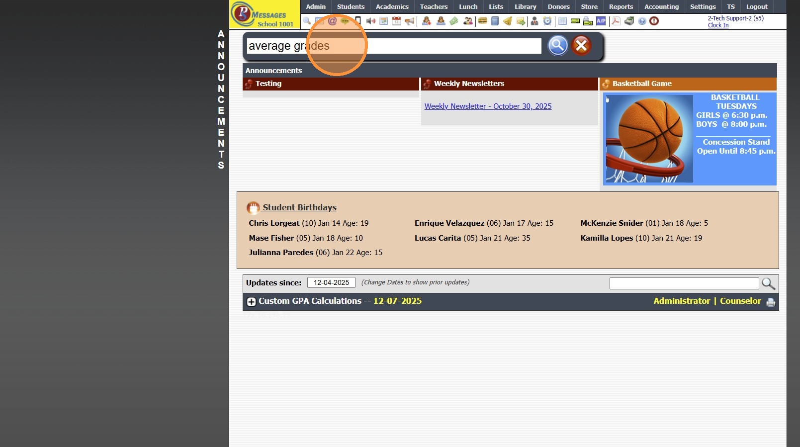 Icon Toolbar - Family Icon Click on the Family Icon for Quick Access to the Student Contacts / Family File 7500.1.13