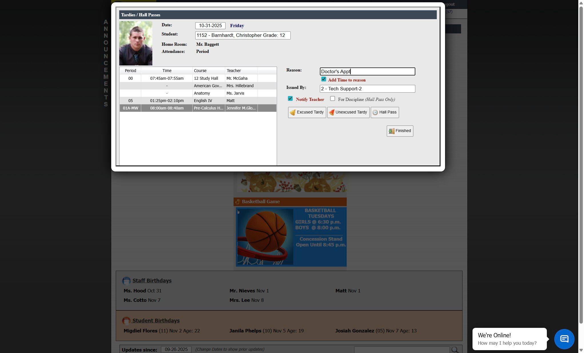 Issuing a Hall Pass (Attendance Tardy Wizard)