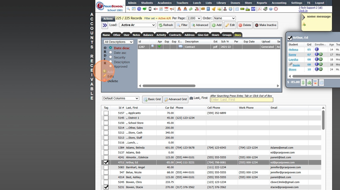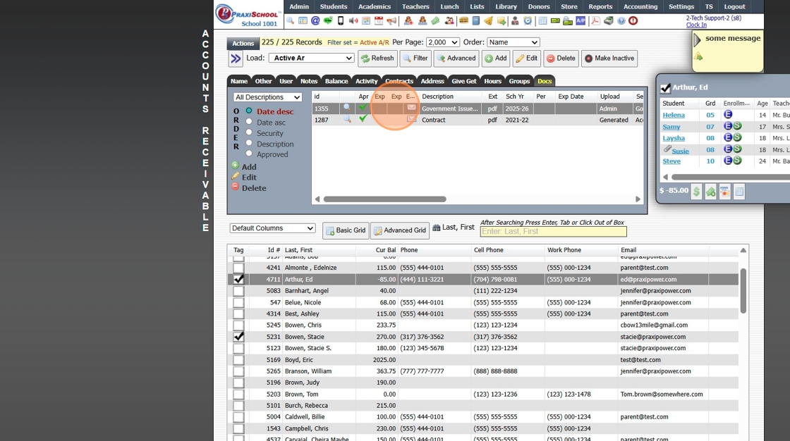 Creating Accounts Receivable Accounts 1. Log into PraxiSchool 2. Typically Student AR Accounts are Created in the Student Wizard (T) 3. After Creating the Student File, the Primary AR Account is Created from the A/R Account Toggle 4. A Secondary AR ...