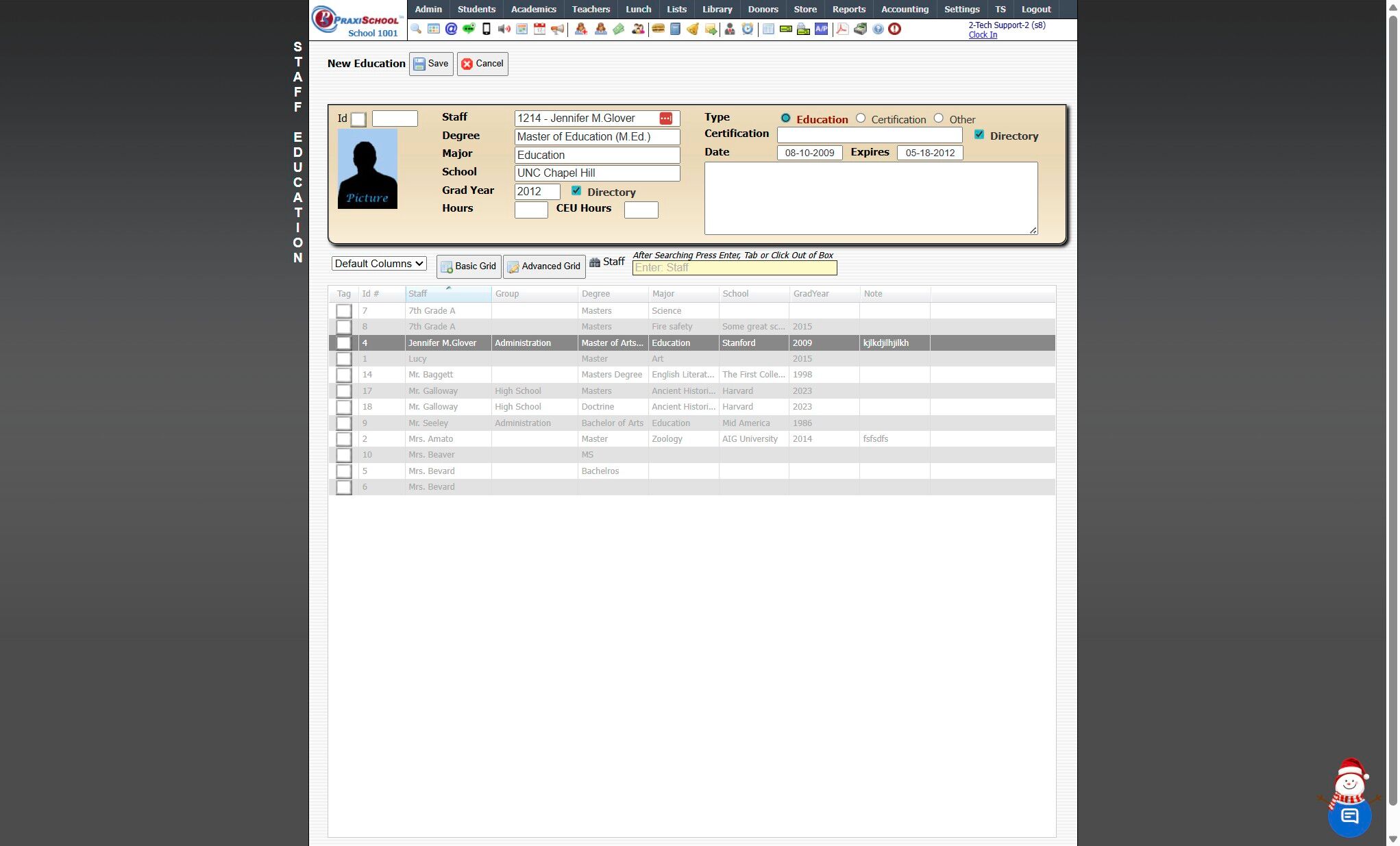 Viewing / Adding Staff Education