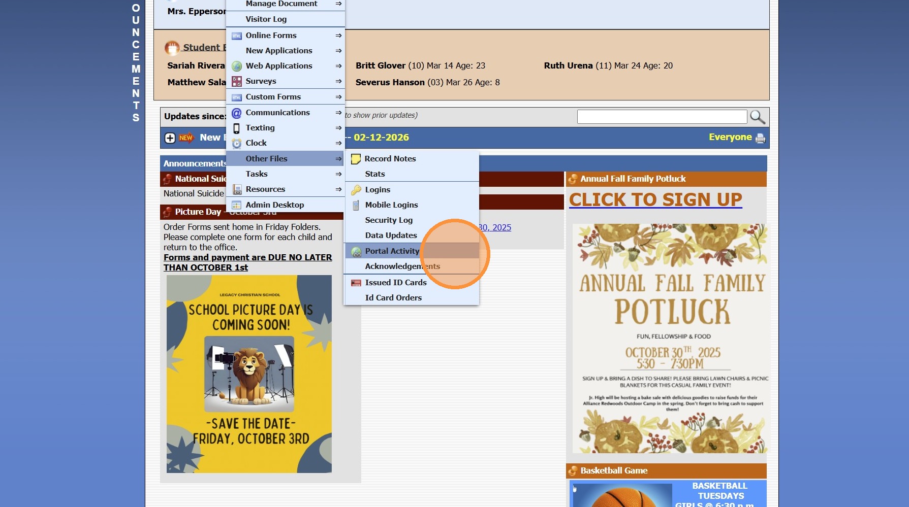 Setting the Override Password for Parent, Student & Applicant Portals 1. Click "Settings" 2. Click "School Settings" 3. Click "Portal" 4. Enter Portal Override Password (Must be at least 5 characters) (Once Portal Override Password has been set, it ...