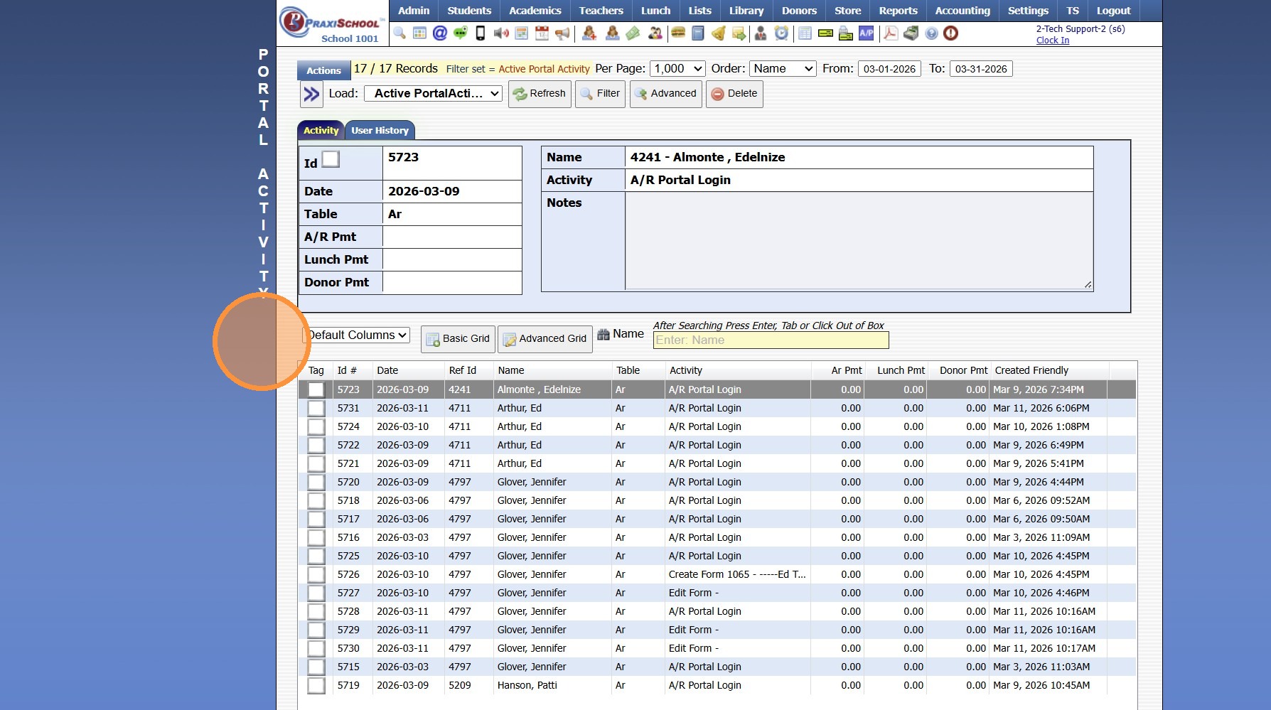 1. Click "Settings" 2. Click "School Settings" 3. Click "Portal" 4. Enter the Password 5. Confirm the Password 6. Click "Save" 6500.2.89