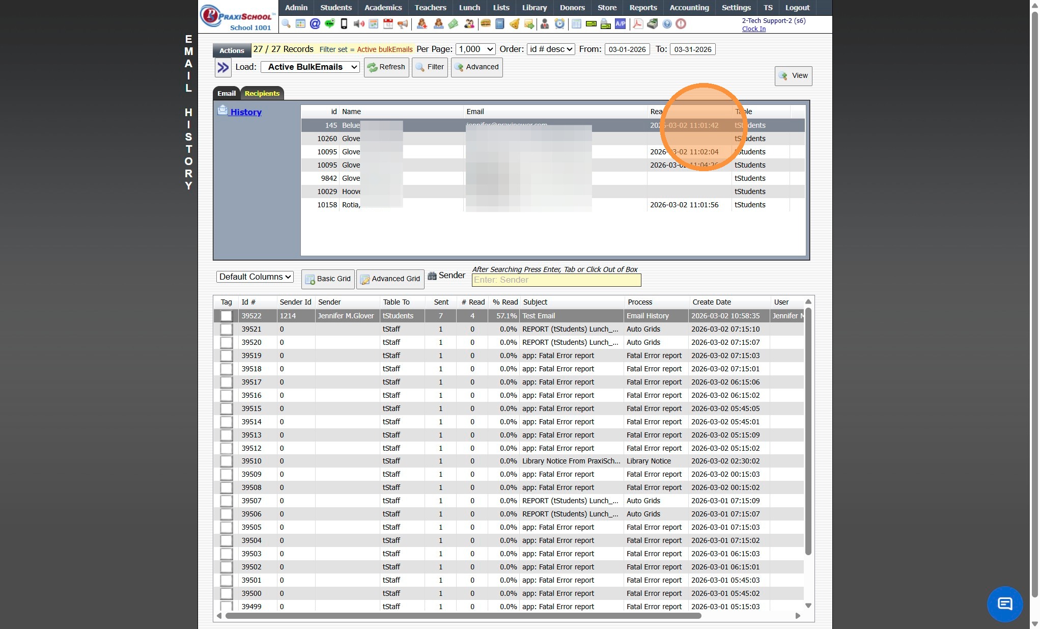 7. Under the Recipient tab, the Last Date & Time the Email was Read by Recipients is Visible