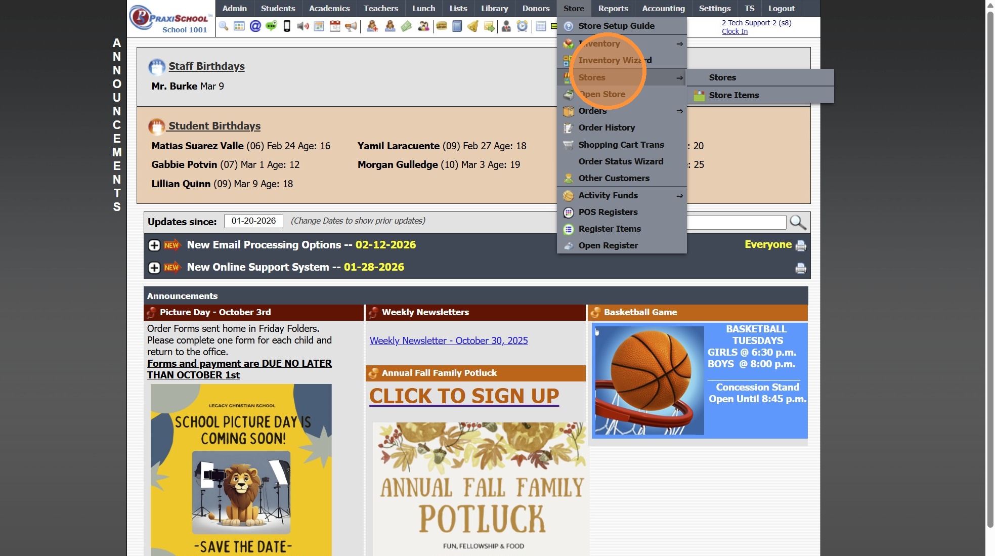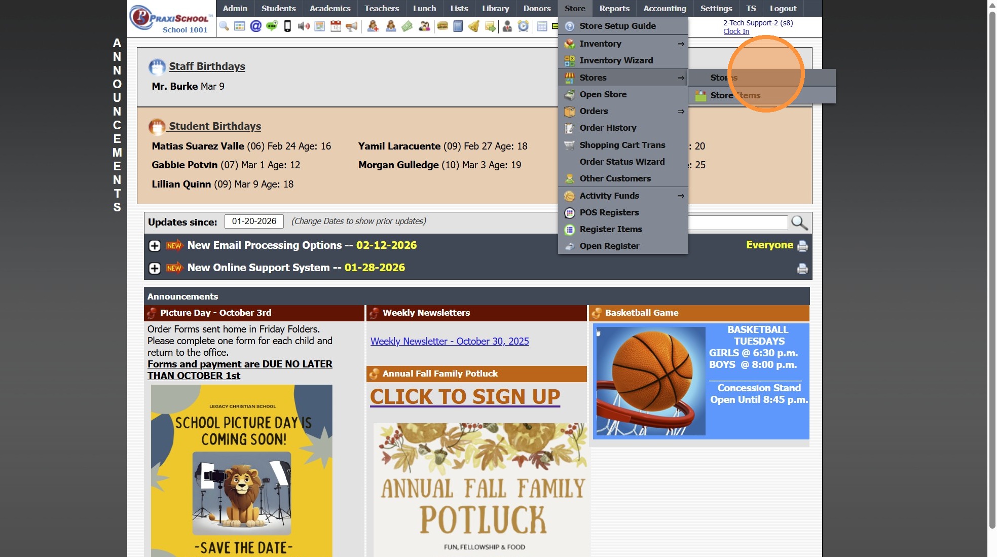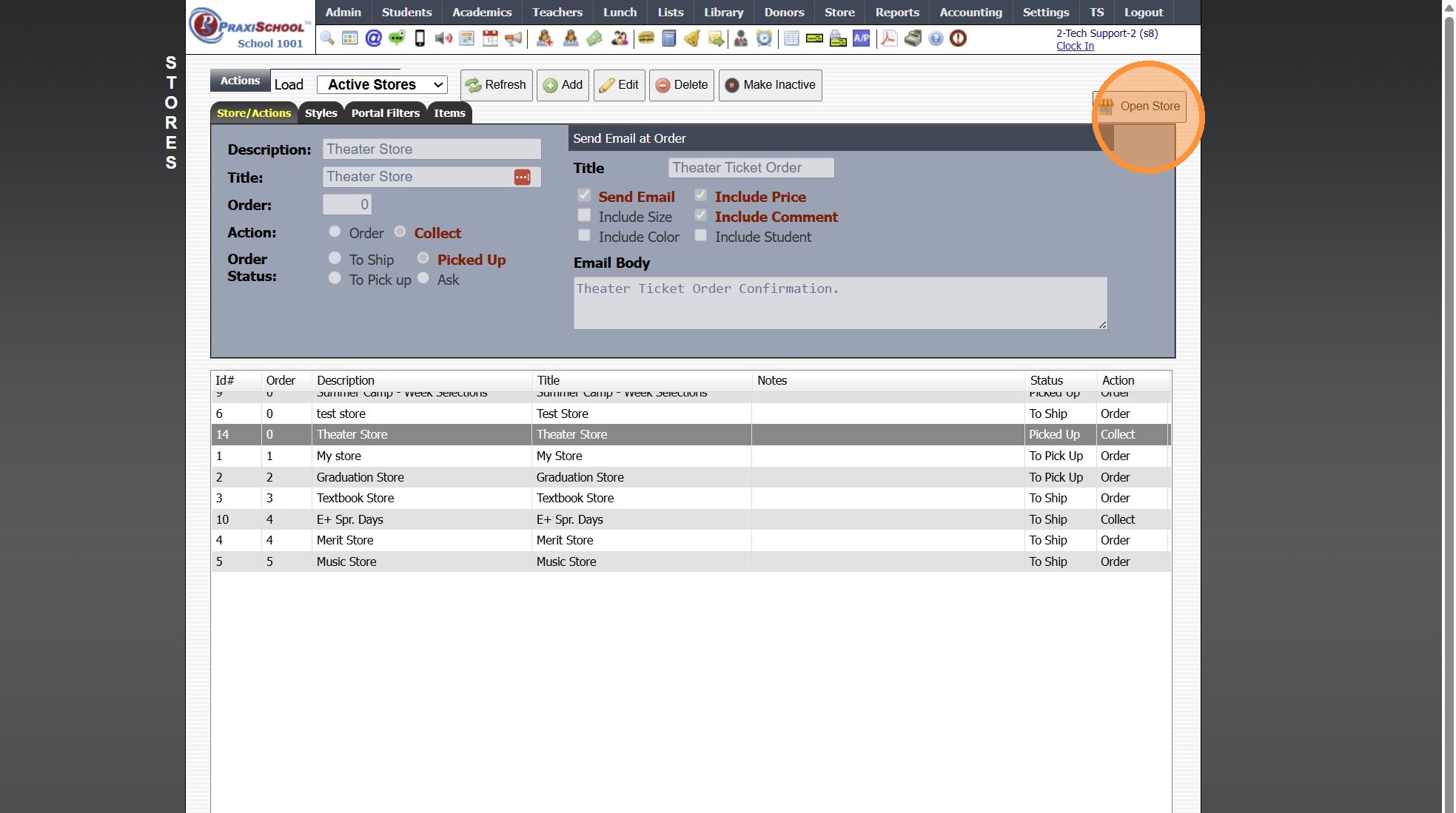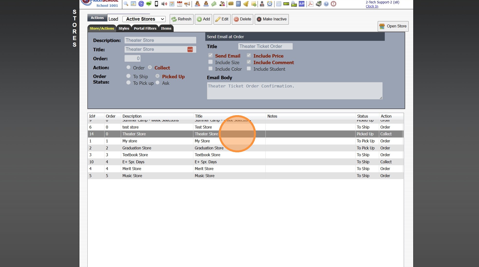 1. Click "Store" 2. Click "Stores" 3. Click "Stores" 4. Click "Add" 5. Enter Description & Title (Title Appears on Portal Store) 6. Select Action (Order or Collect) (Stores set to Collect require Payment on Submission of Store Order) 7. Select Order ...