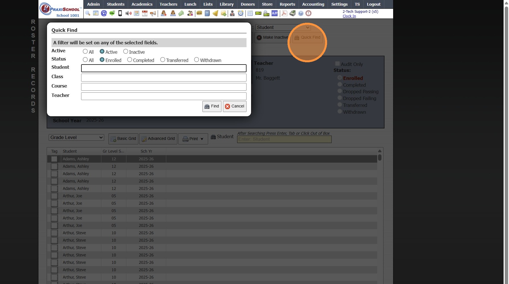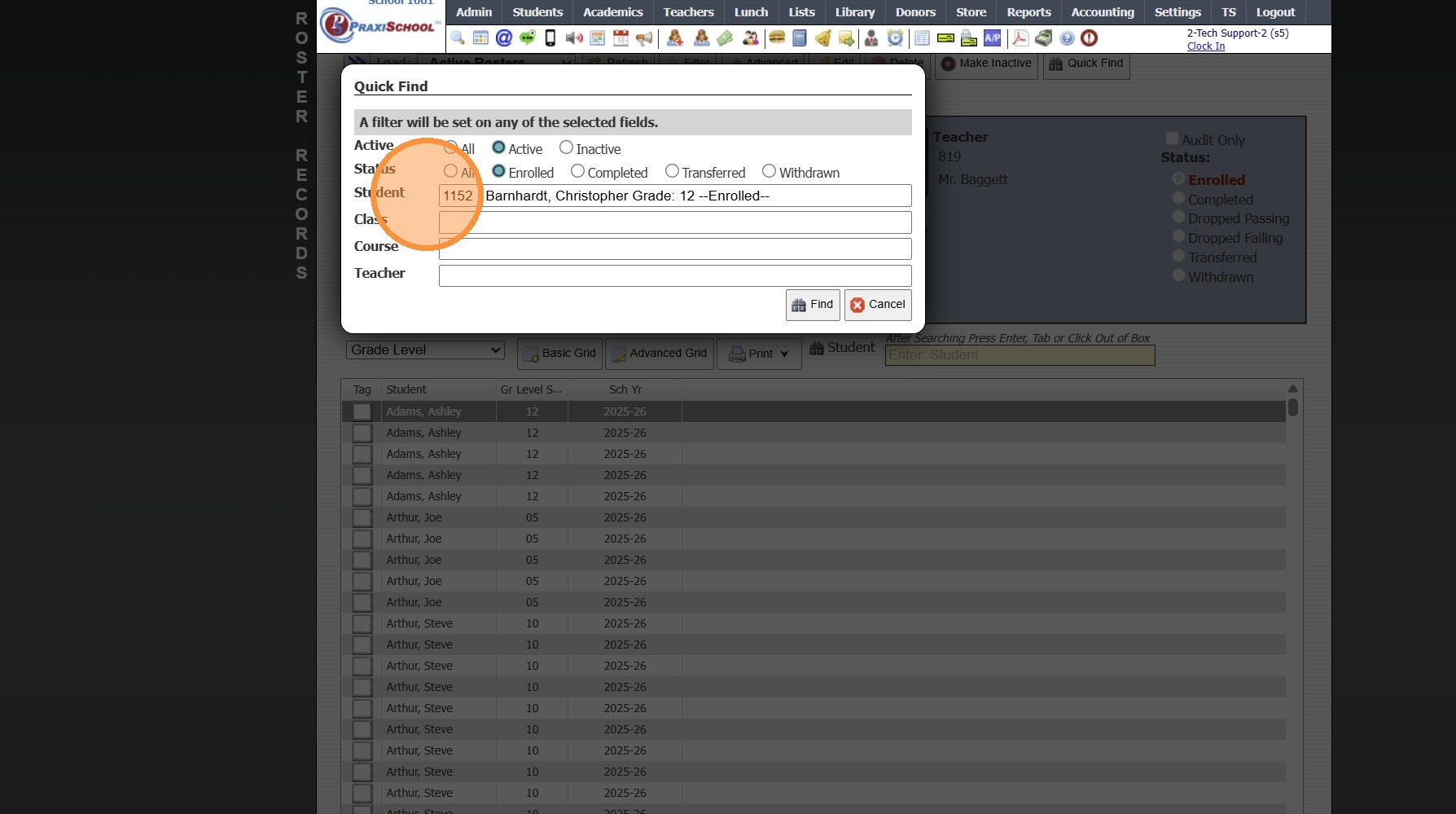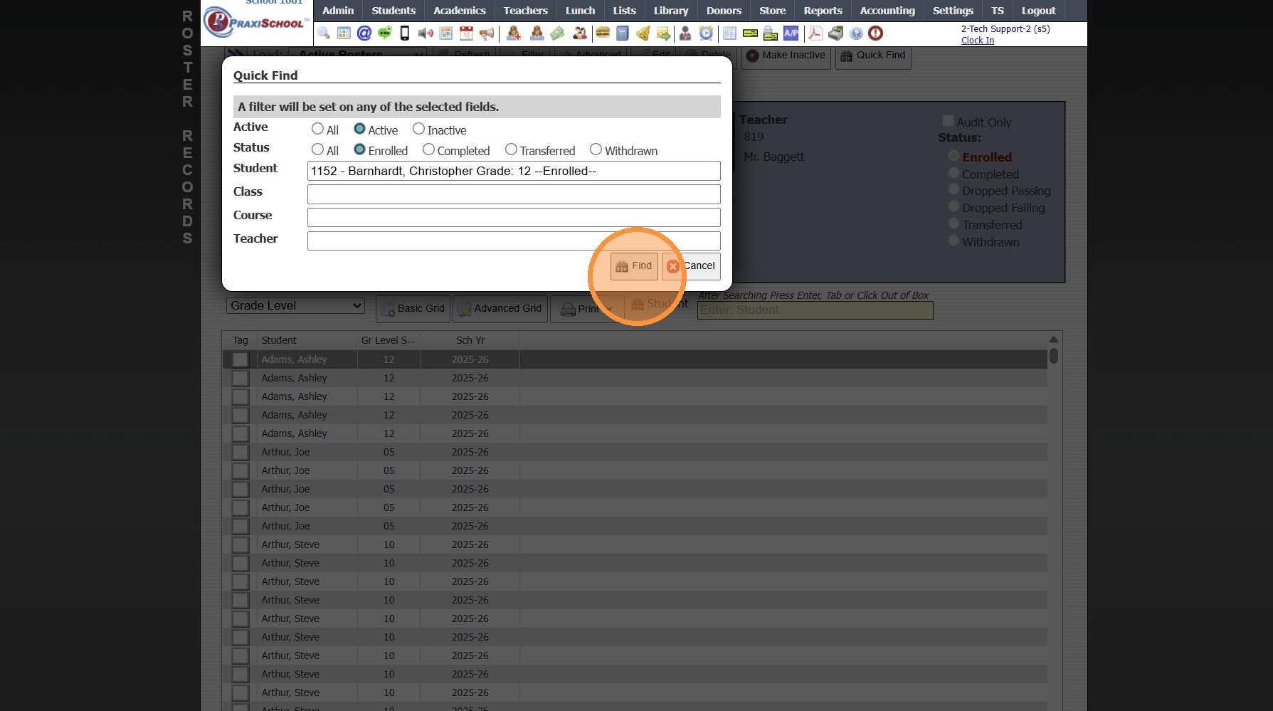 Withdrawing a Student 1. Log into PraxiSchool 2. Click "Students" 3. Click "Students" 4. Select Student to Withdraw 5. Click "Actions" 6. Click "Withdraw" 7. Select the Correct Session "Current, Summer or Next" 8. Click the "Clear" Box to Clear the ...