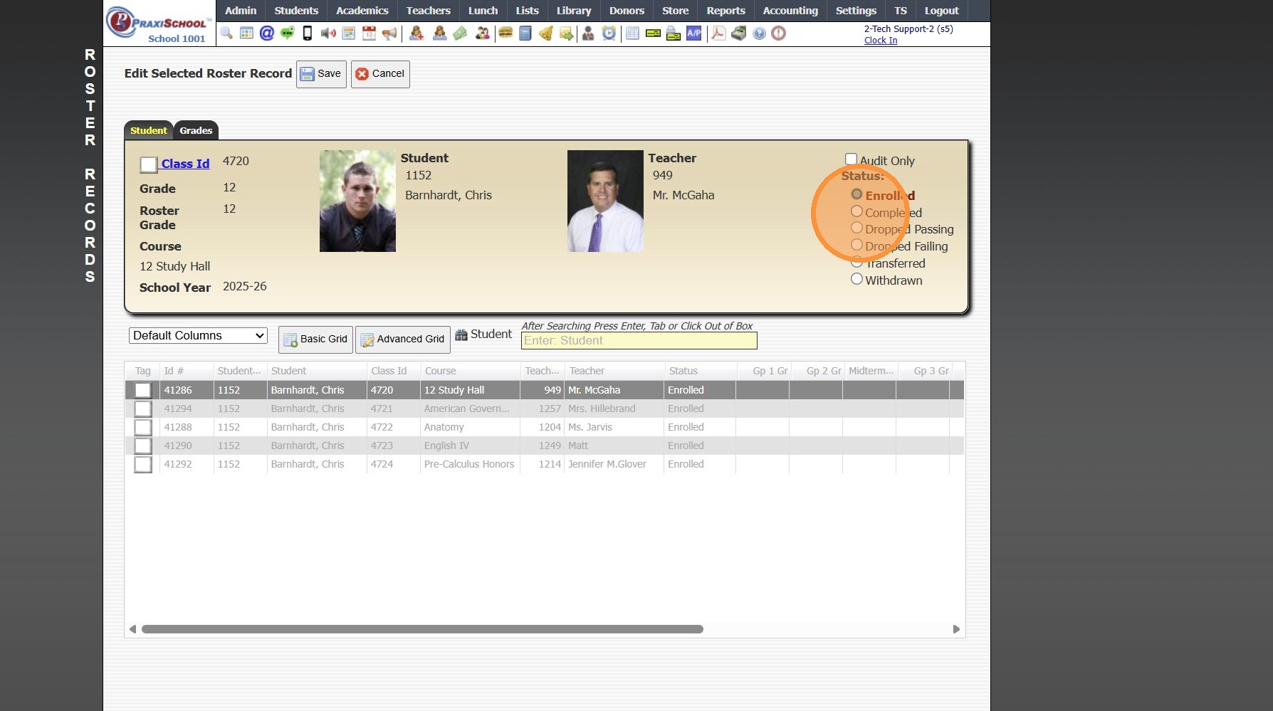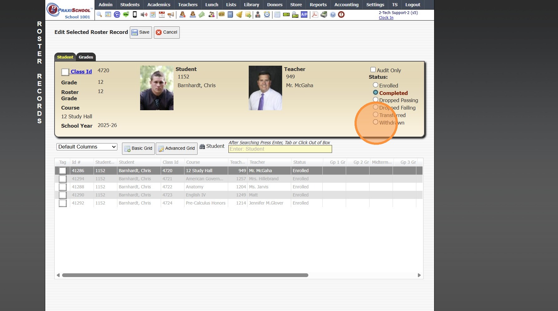I Withdrew a Student and now the Student's Grade are not on the Report Card. Tip: When Withdrawing the Student, next to Clear Class Schedule, the default option of Completed was more than likely changed to Withdrawn. Follow Instructions below to mark ...
