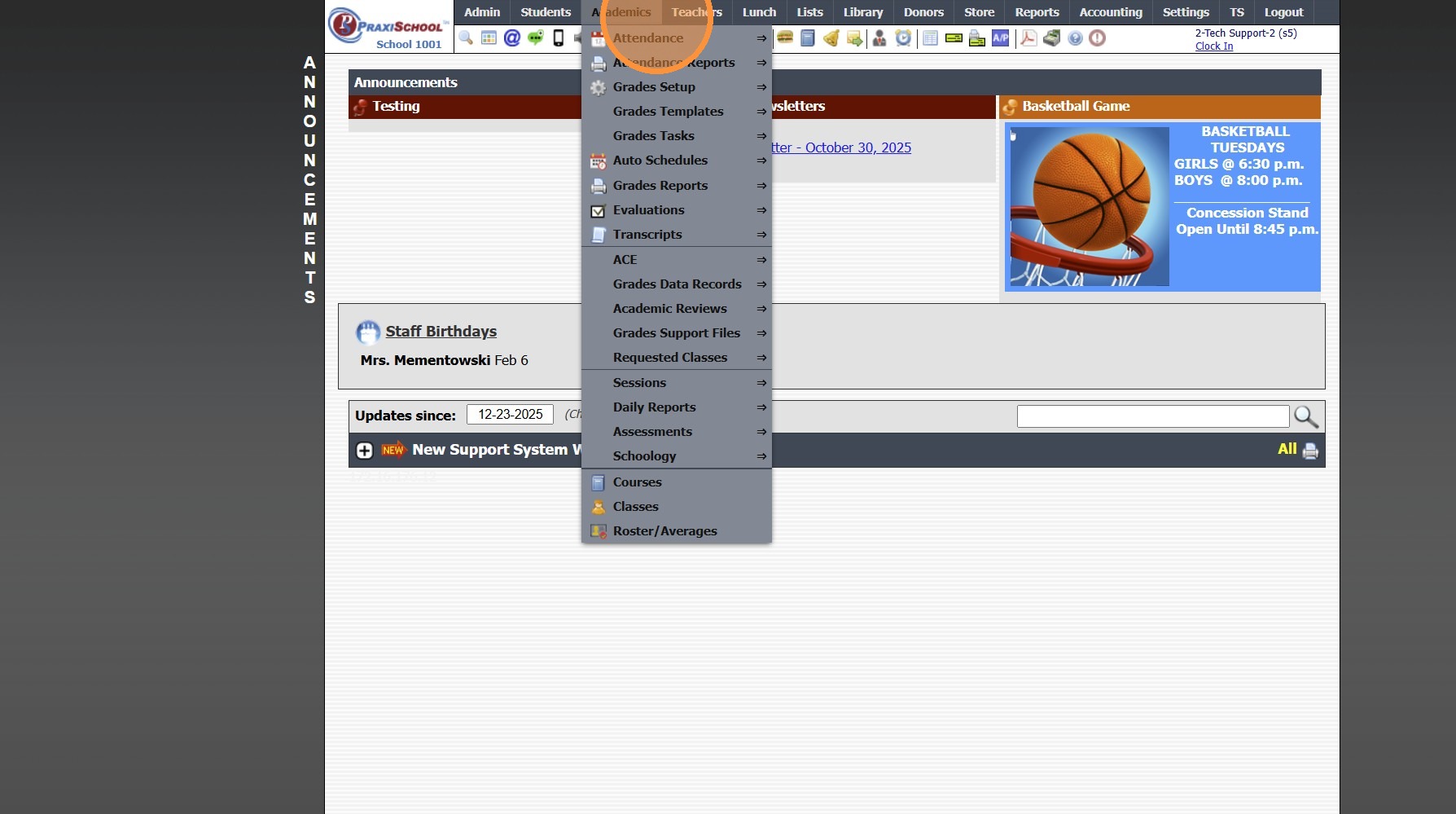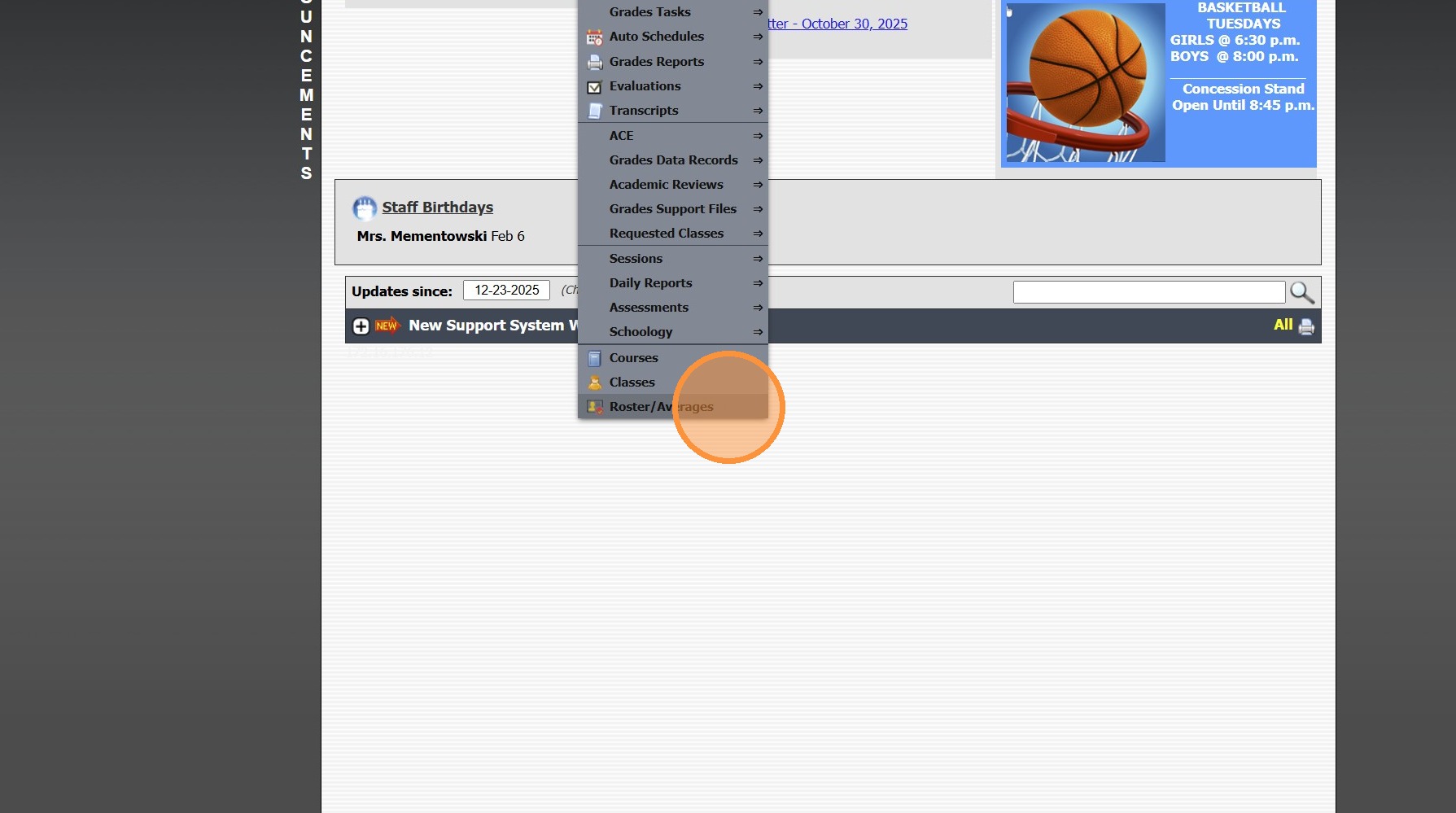 Printing Class Averages 1. Click "Academics" 2. Click "Grades Reports" 3. Click "Class Averages" 4. Select from School Year Dropdown 5. Select the Grade Period/Quarter Option: (GP1, GP2, GP3, GP4, SEM1, SEM2 or Annual) 6. Select Rounding Option: (0, ...